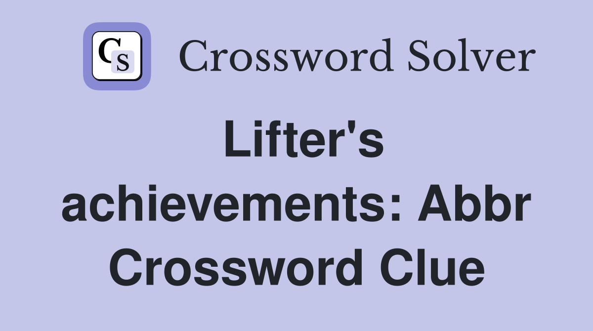 Lifter #39 s achievements: Abbr Crossword Clue Answers Crossword Solver