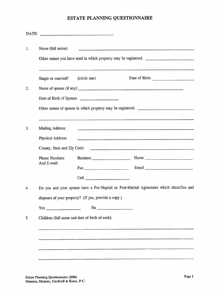 Here are some of the images for Estate Planning Questionnaire Template that we found in our website database.