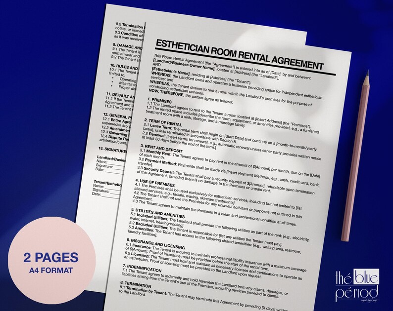 Esthetician Room Rental Agreement Template Etsy