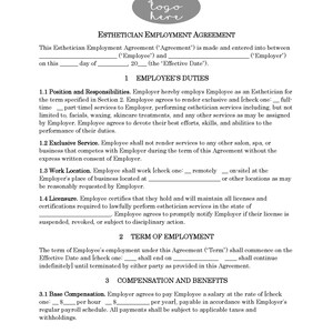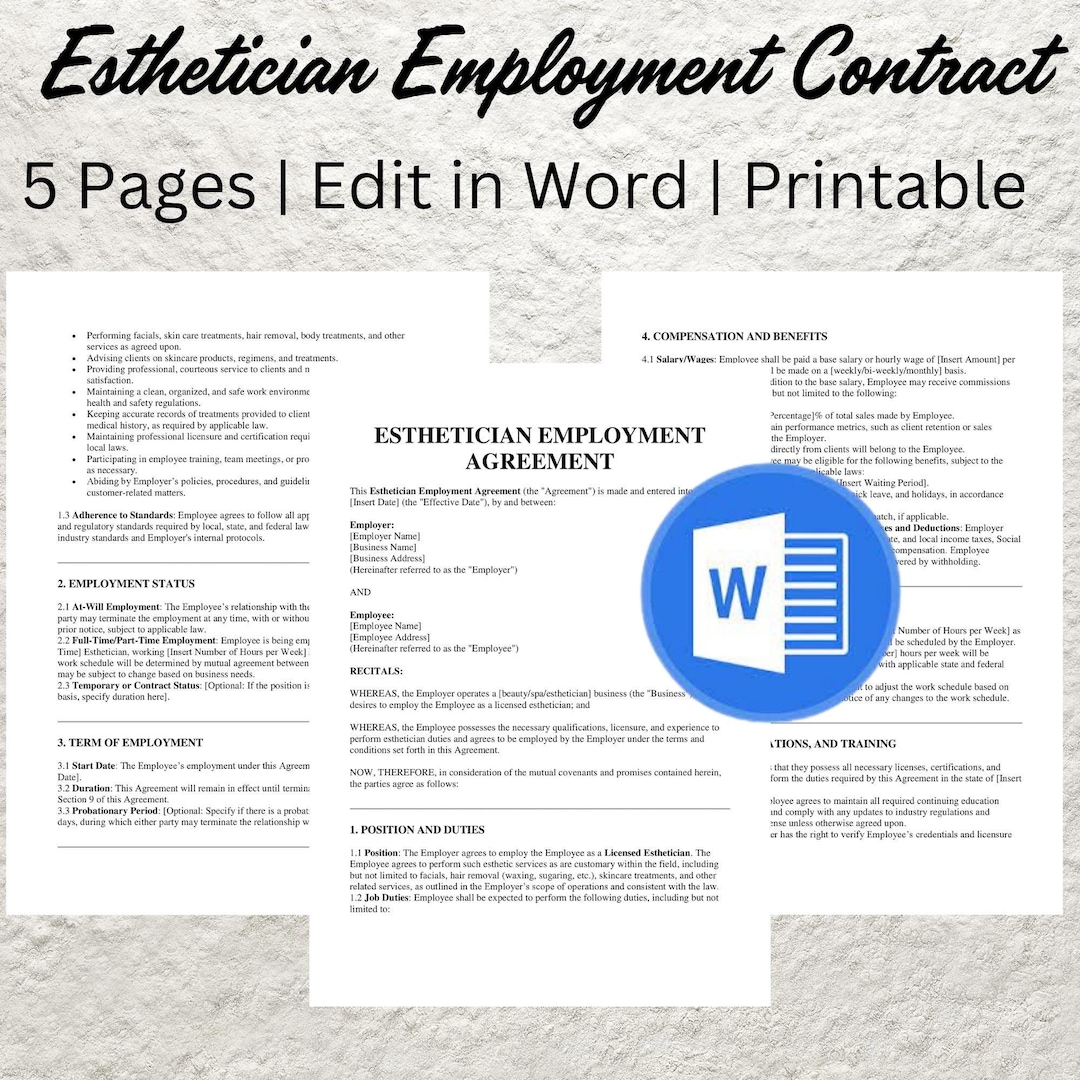 Esthetician Employment Contract Template: Editable Med Spa Agreement