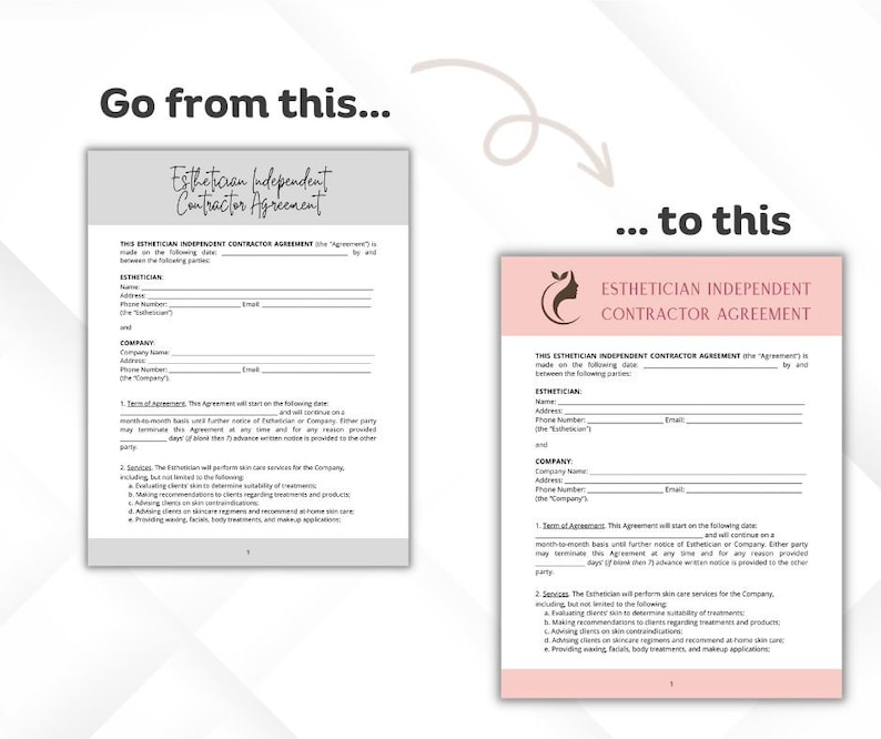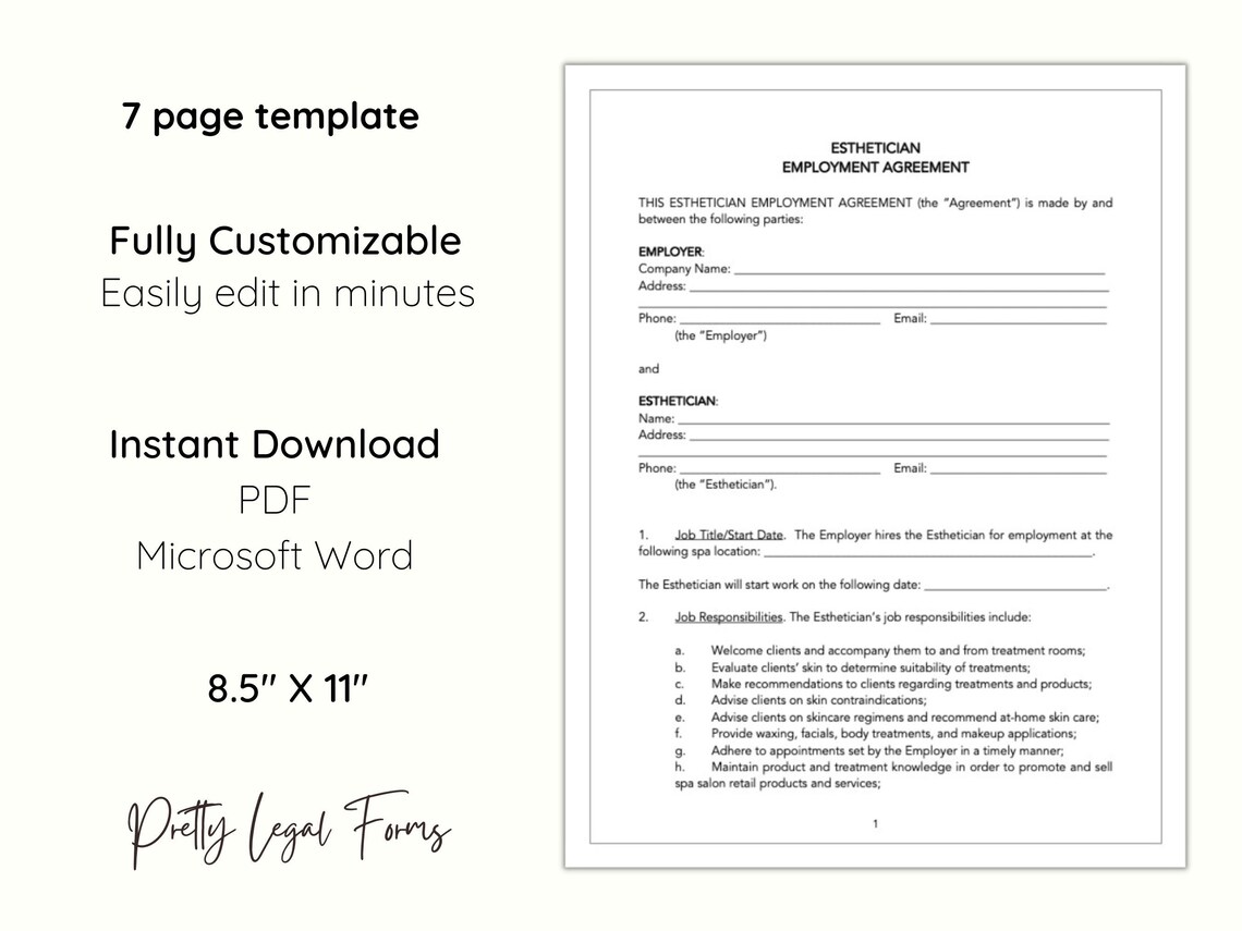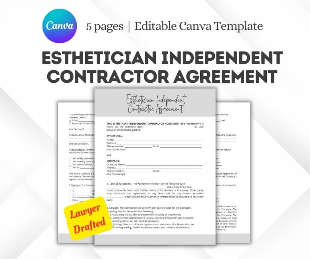 Esthetician Contract Template Etsy Israel