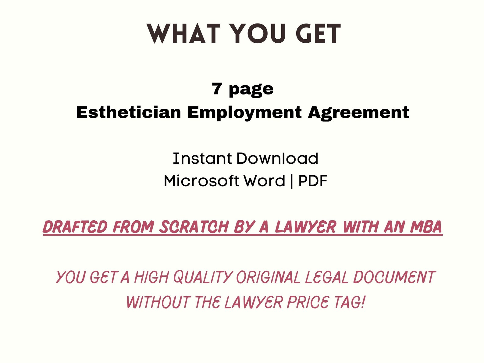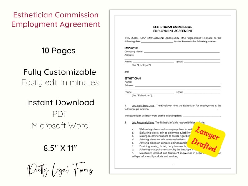 Esthetician Employment Agreement Template Attorney written Editable