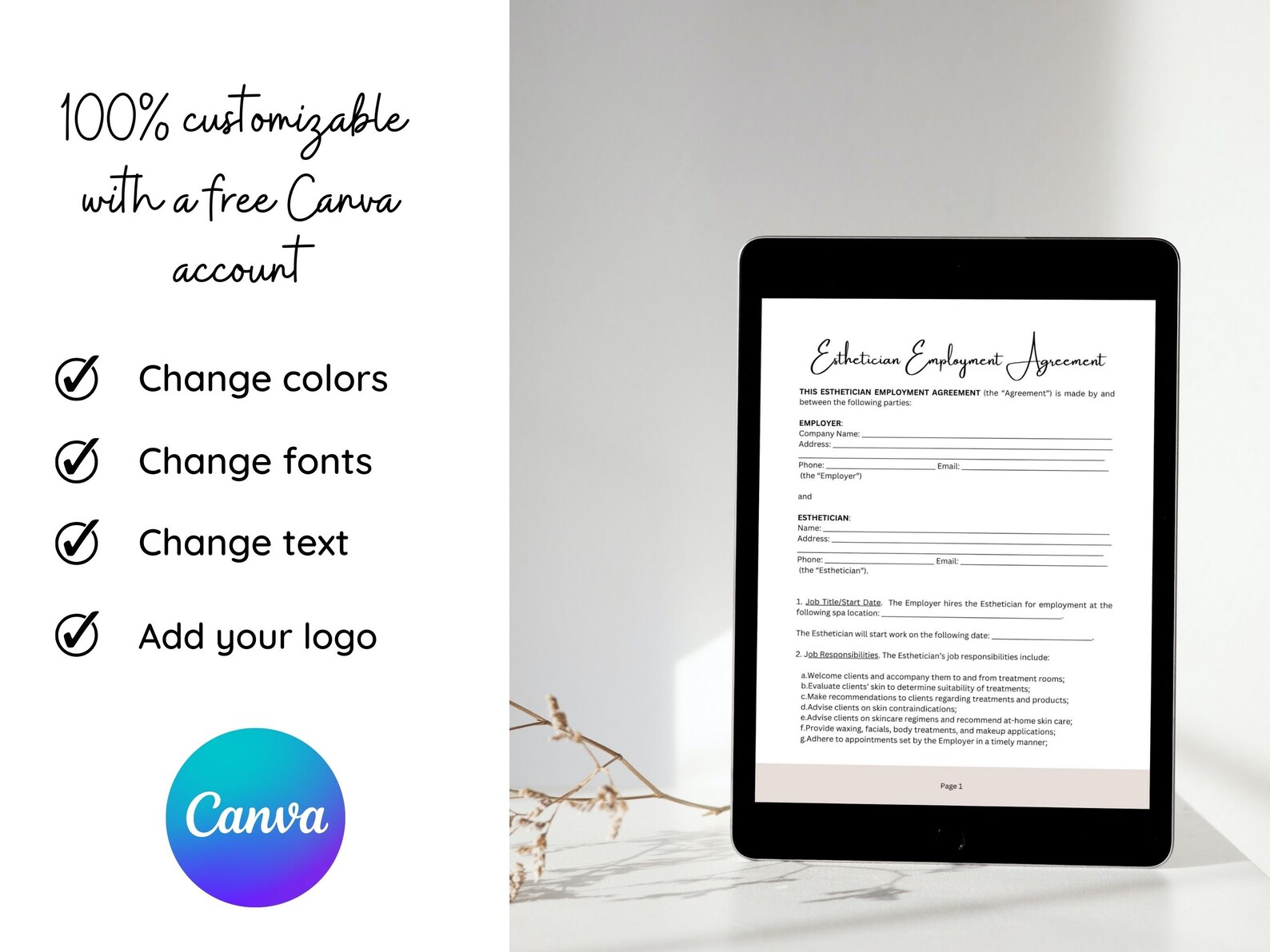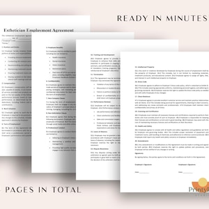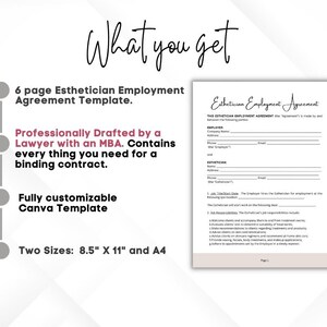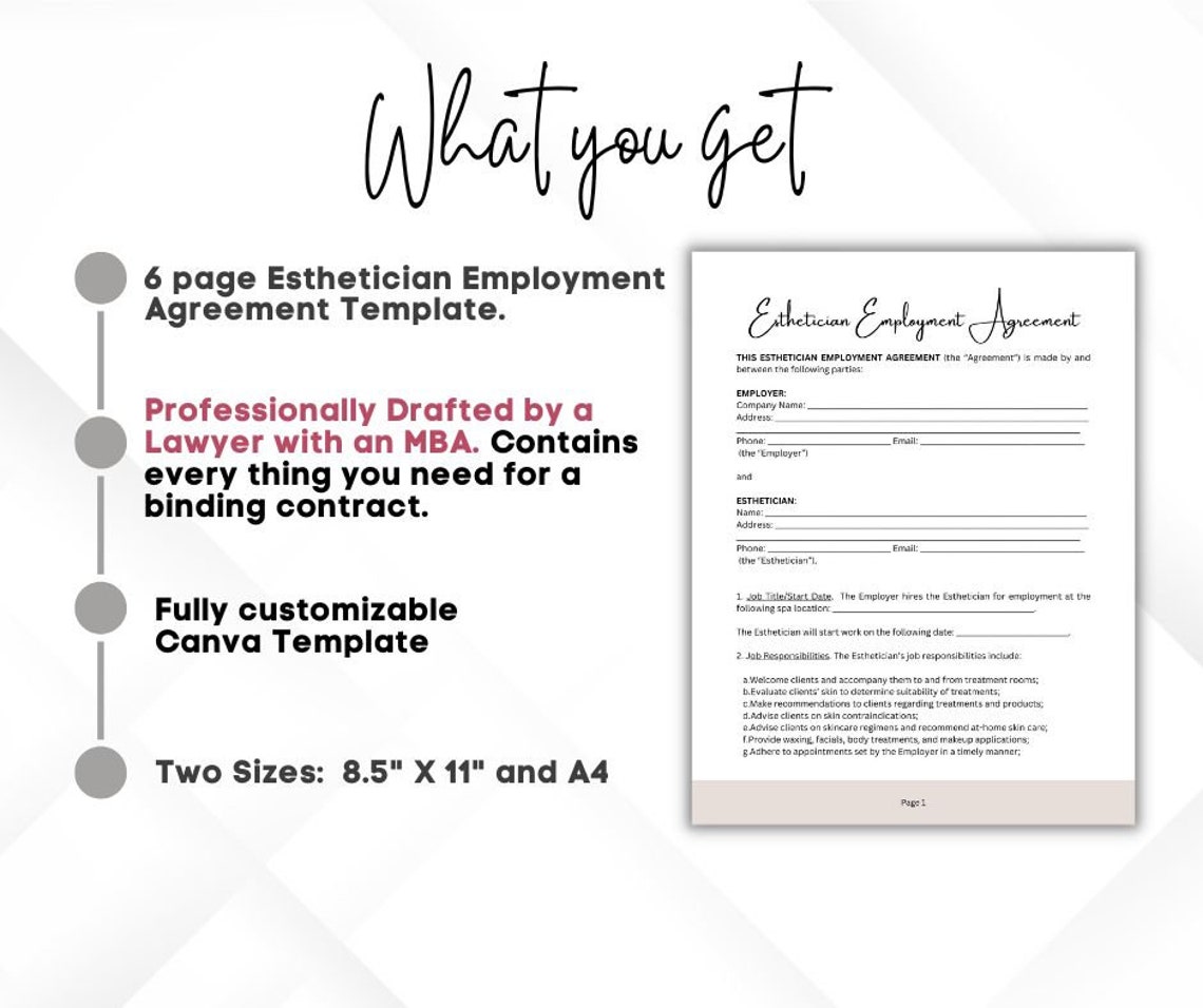 Esthetician Employment Agreement CANVA Template Editable Esthetician