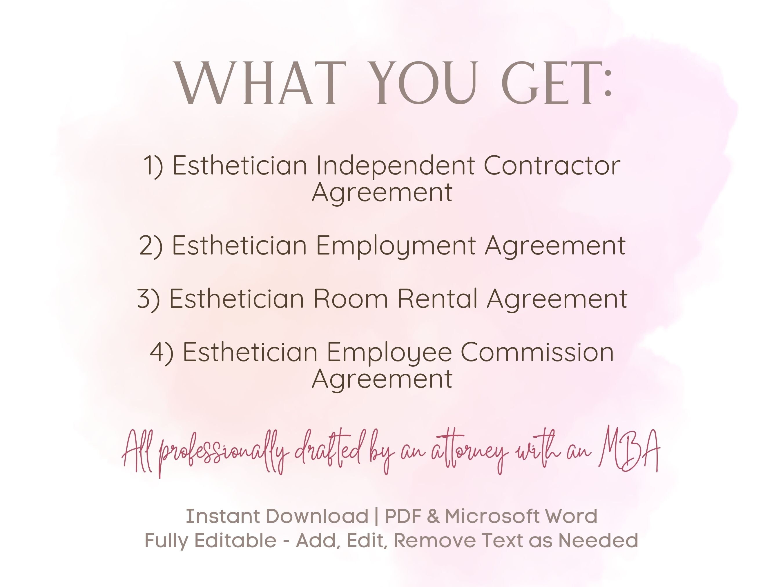Esthetician Independent Contractor Agreement Hiring Bundle 1099