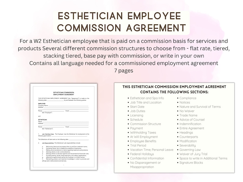 Esthetician Commission Agreement Aesthetician Employee Commission