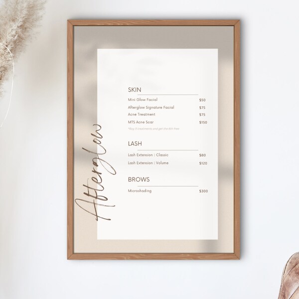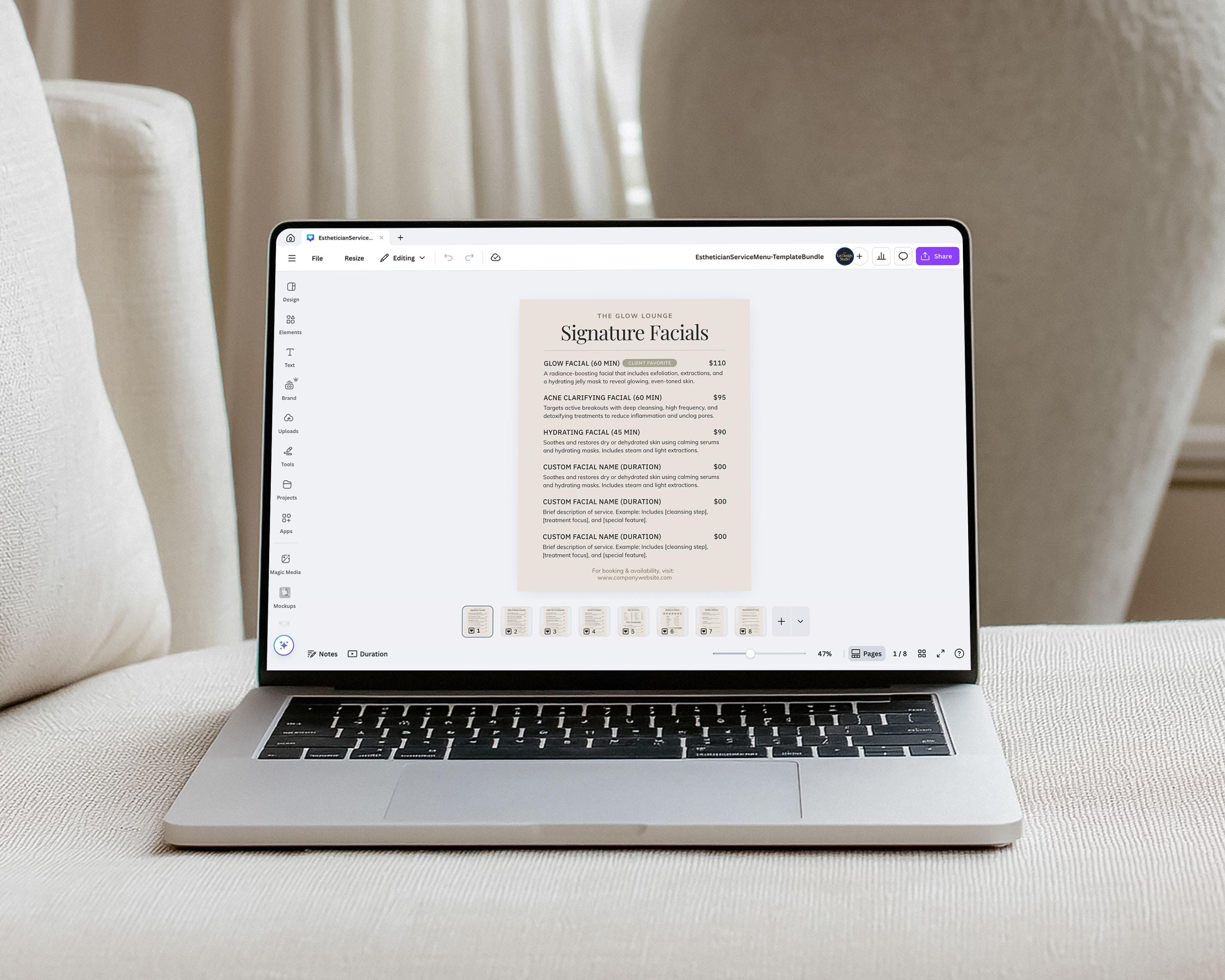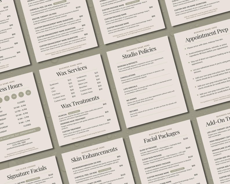 Esthetician Service Menu Template Bundle Editable Canva Templates for