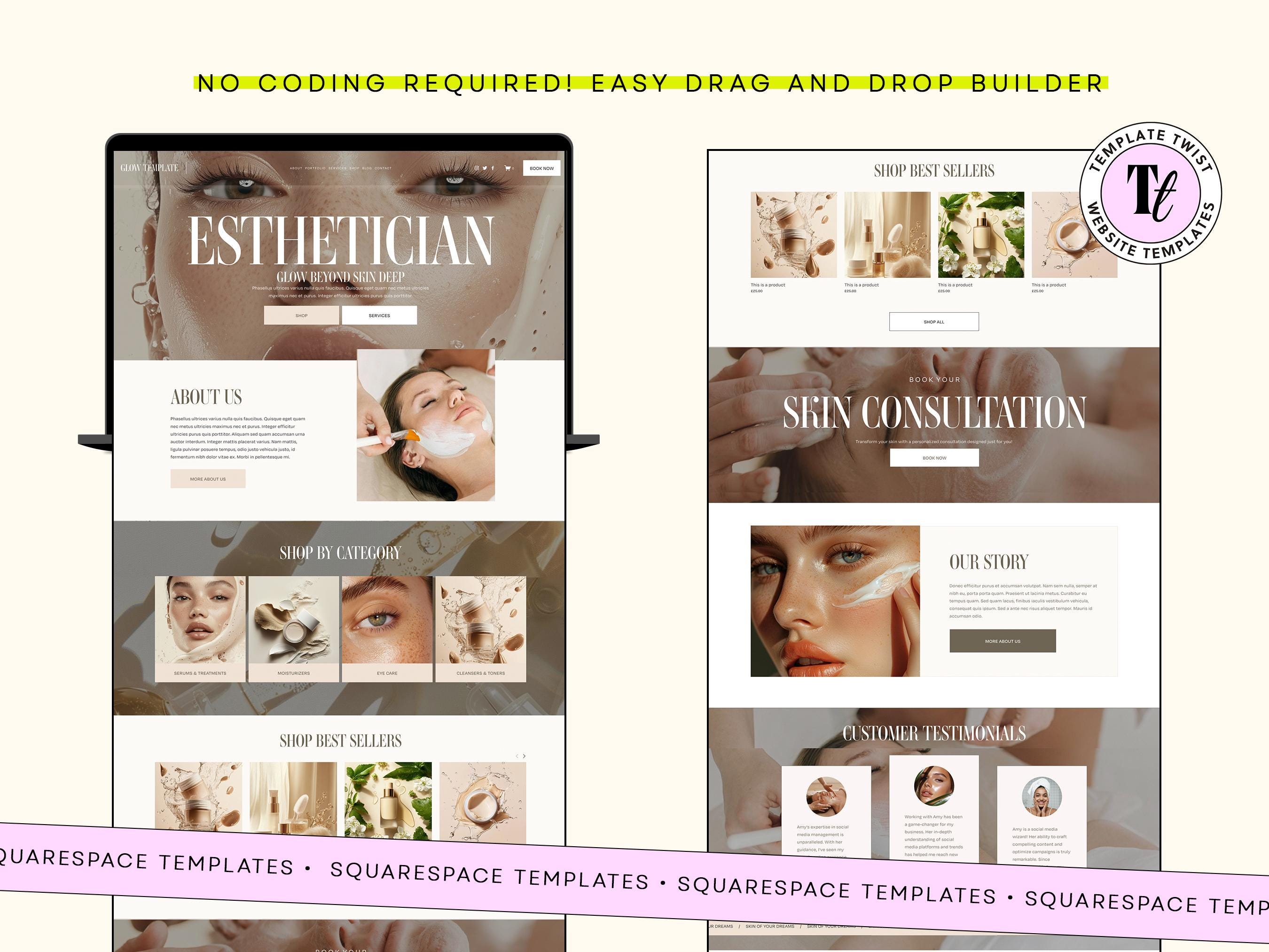 Squarespace Template for Beauty Salons Esthetician Website Template