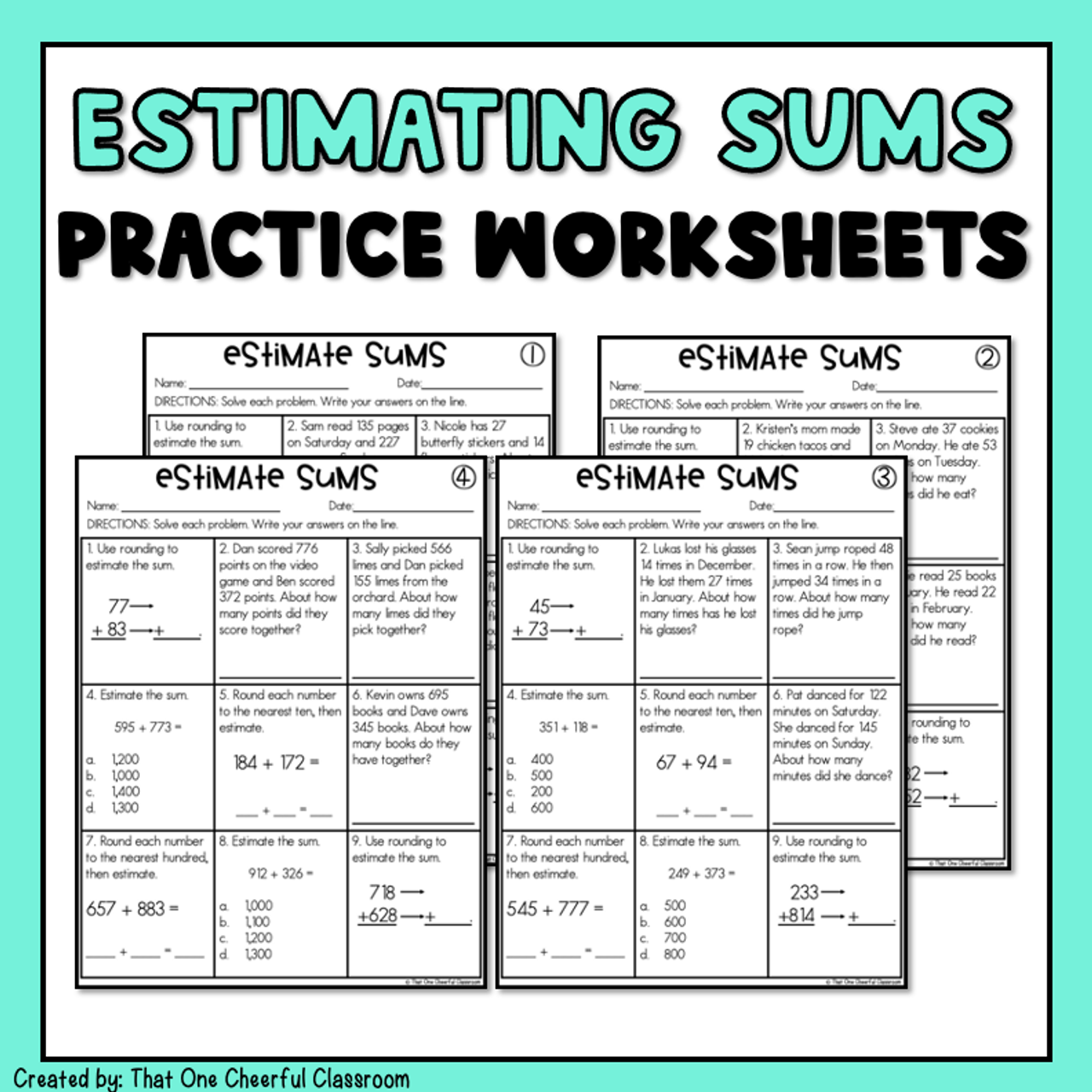 Estimating Sums Worksheets