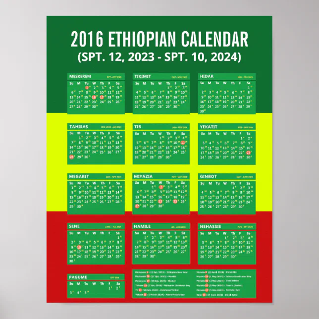 Download Ethiopian Calendar Today 2016 PDF Poster Zazzle