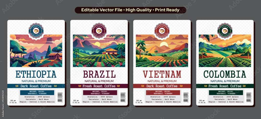 Premium Ethiopian Coffee label design Brazil Coffee Set Sticker Design