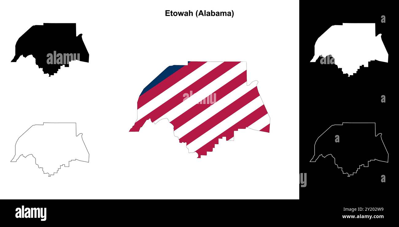 Infographic and Map of Etowah County in Alabama USA Stock Vector