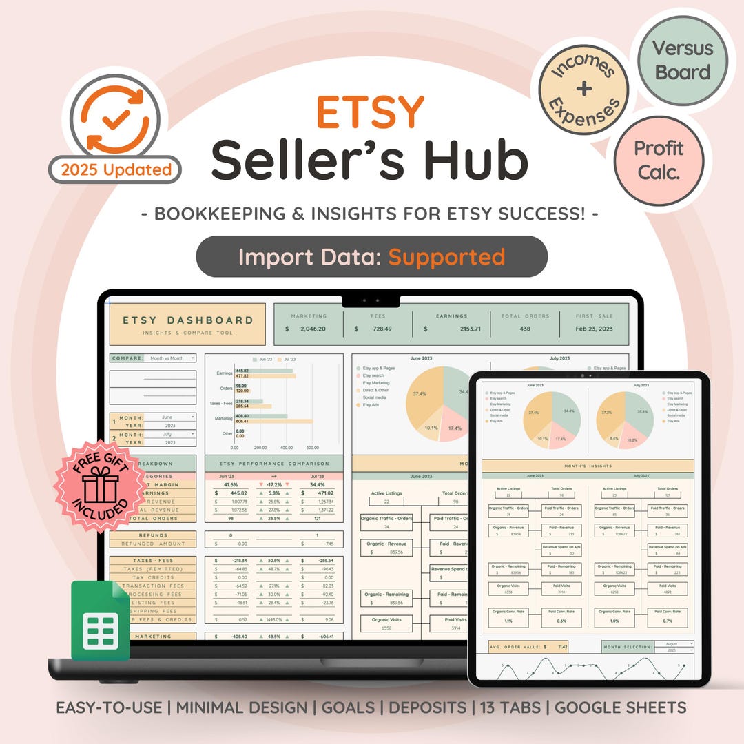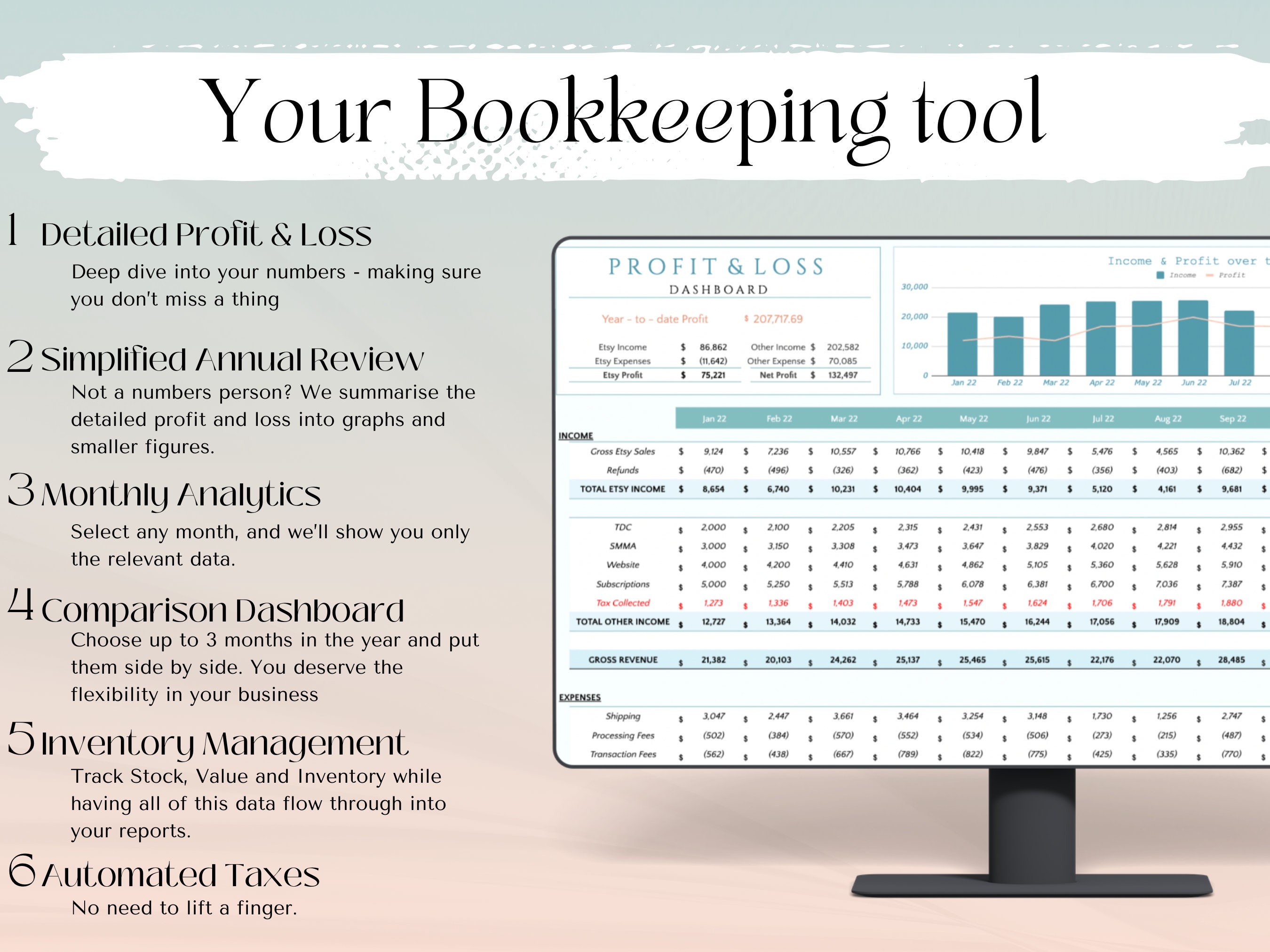 Etsy Bookkeeping Template for Etsy Sellers Profit Loss Spreadsheet
