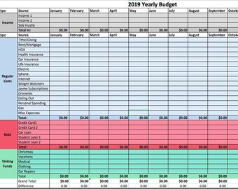 Yearly Budget Excel Spreadsheet Template Download Budget Etsy
