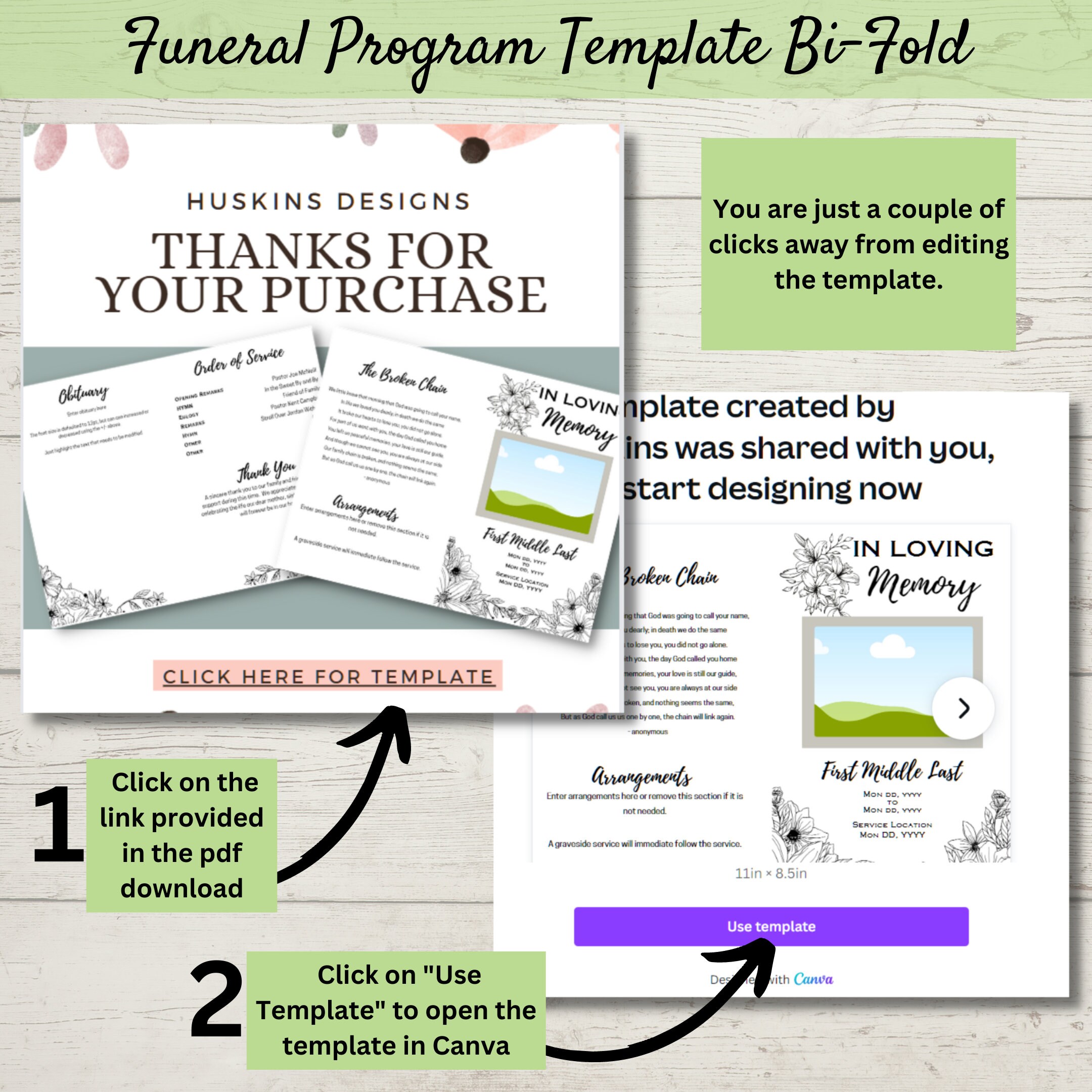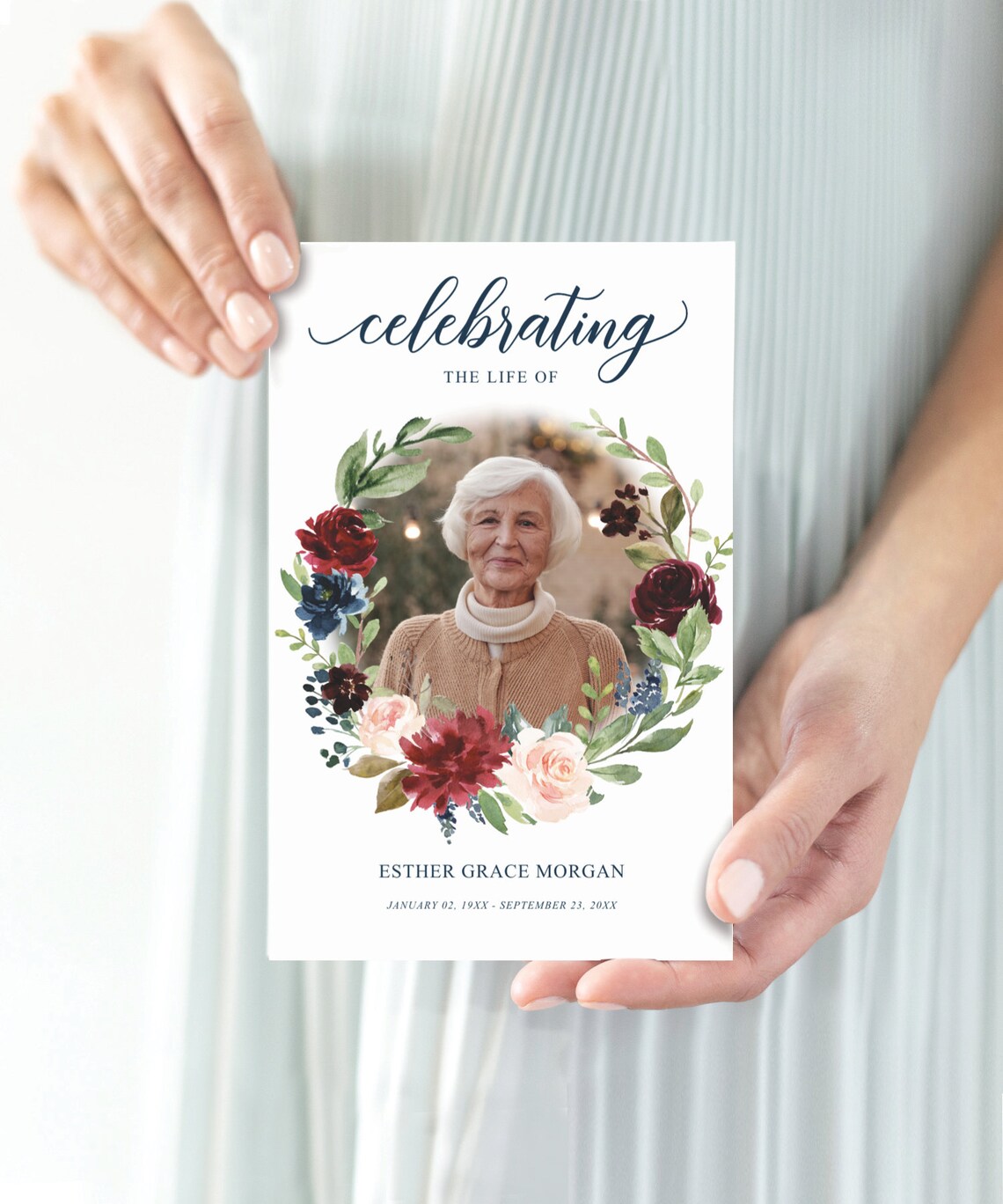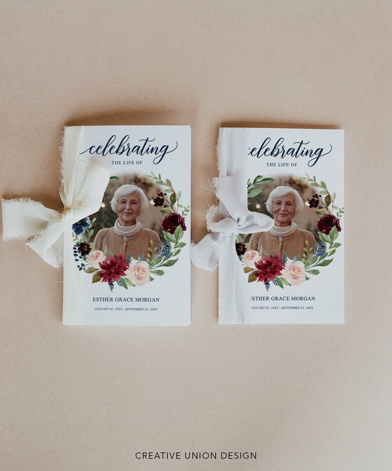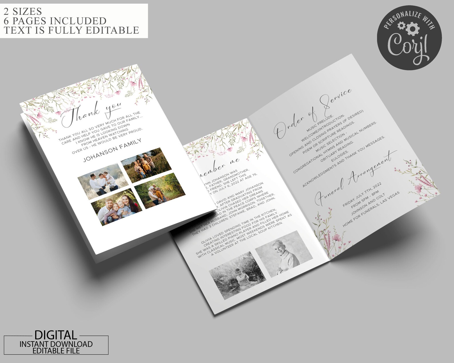 Editable Funeral Program Template Floral Minimalist Design Canva Etsy