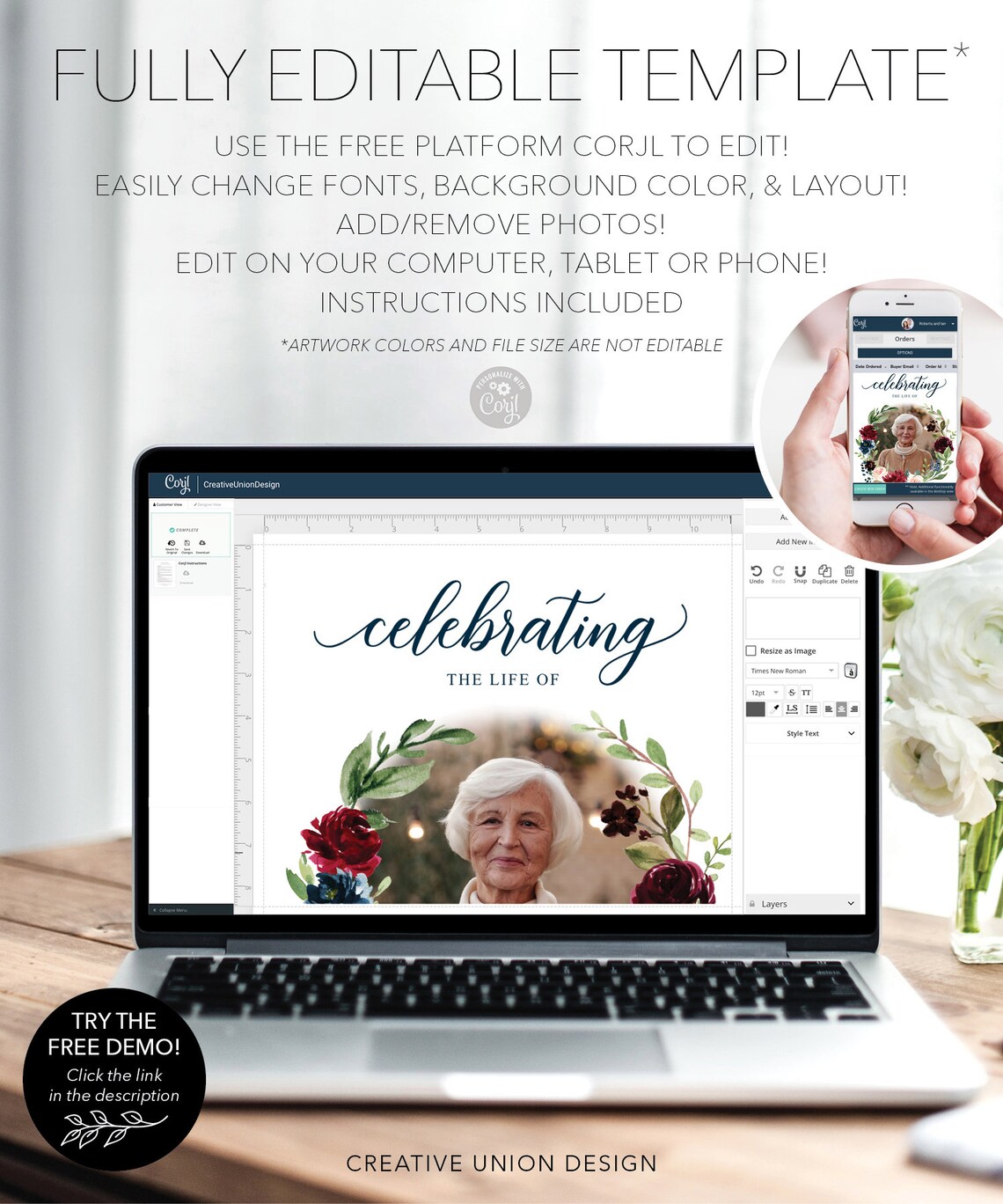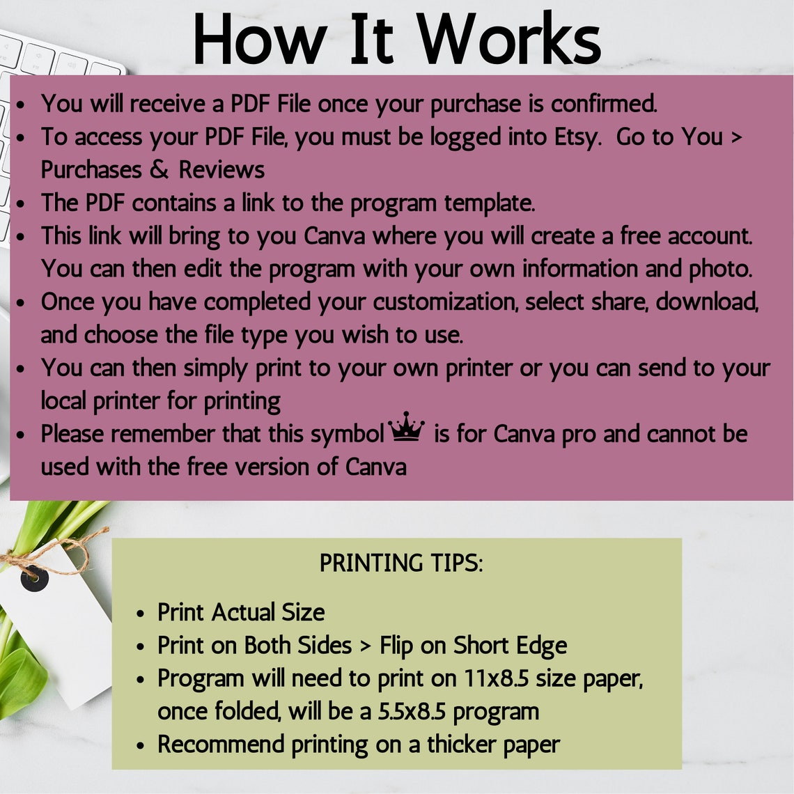 Funeral Program Design Template Obituary Editable Canva Pro Etsy