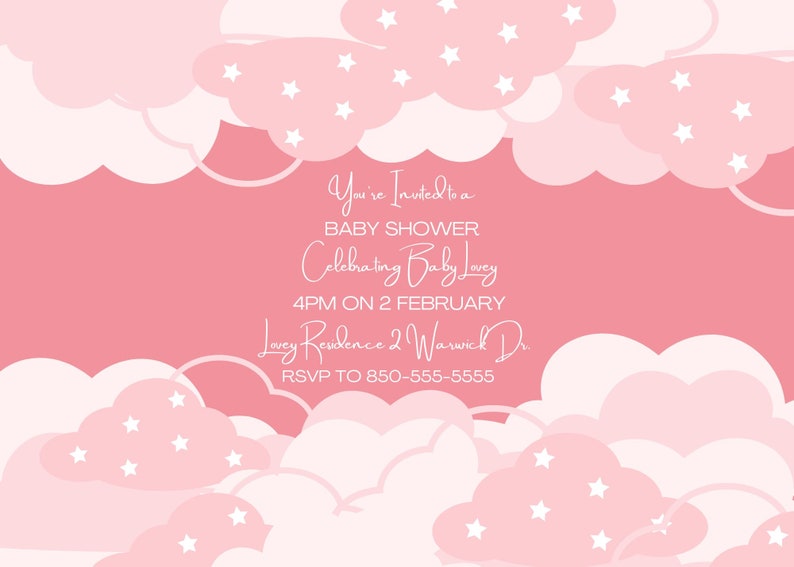 Pink Clouds Baby Shower Invitation Template Etsy