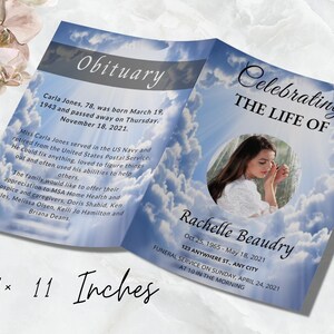Memorial Program Funeral Obituary Template Clouds Etsy