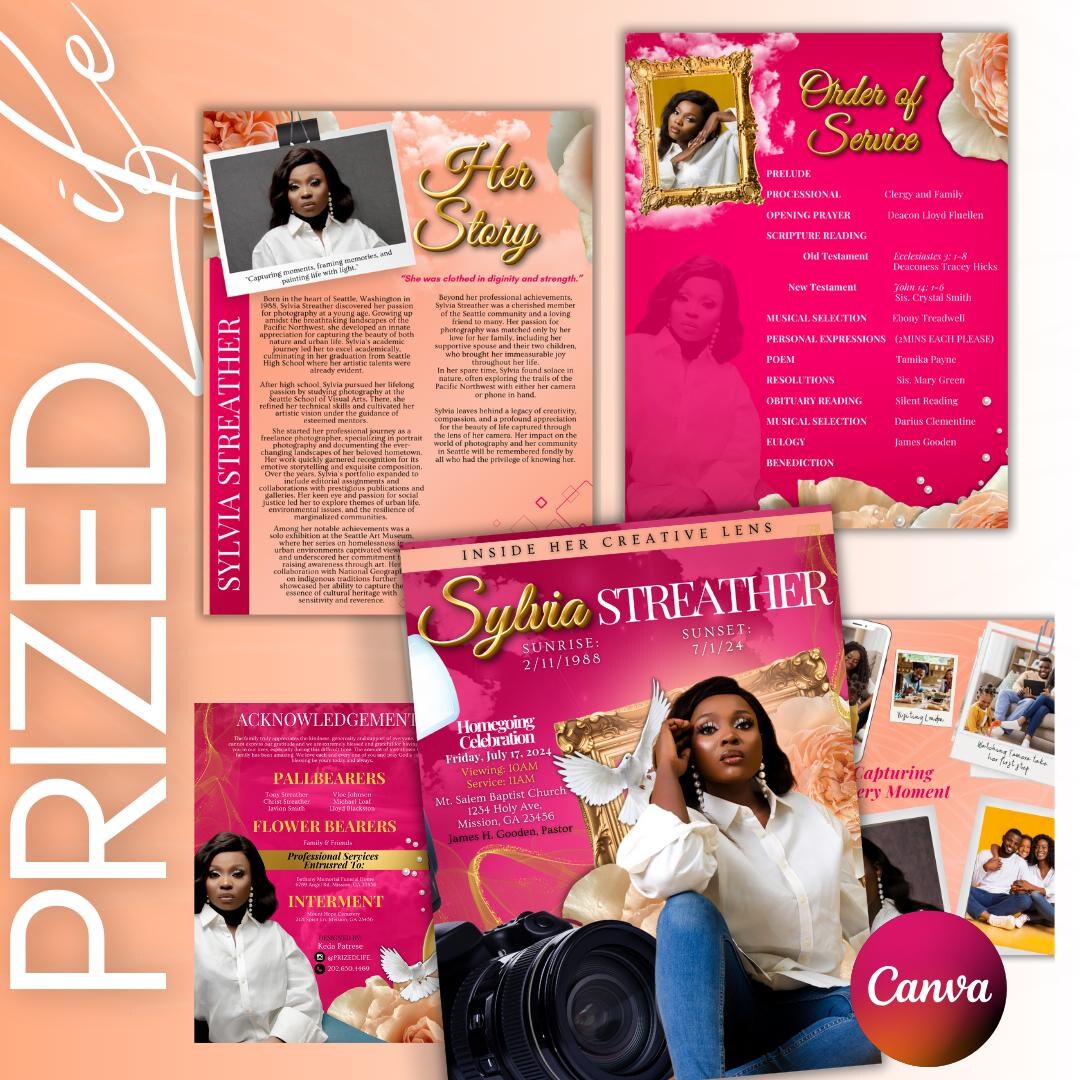 Editable Funeral Program Template Obituary Bi fold (canva Template
