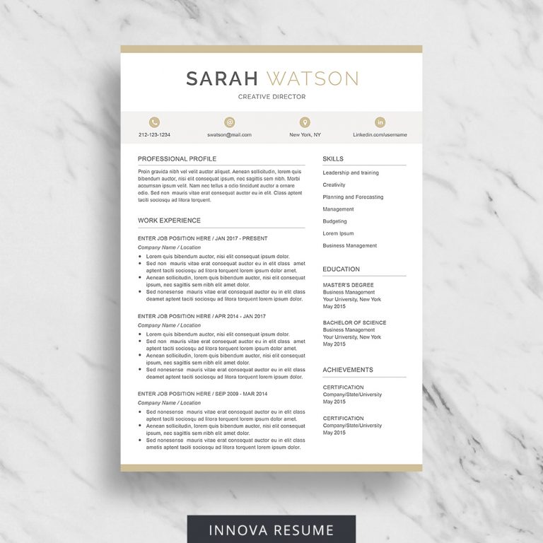 Creative Modern Resume / CV Template for Word AND Pages Professional