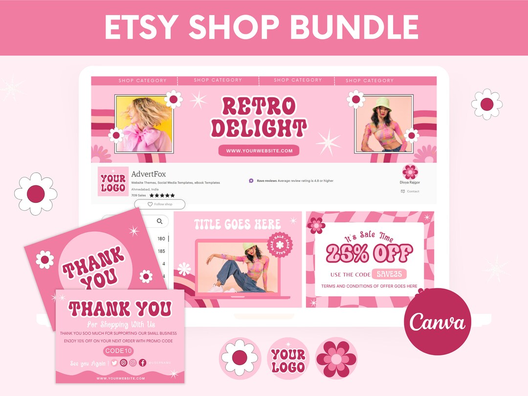 Etsy Shop Banner Kit and Templates for Editing on Canva Canva Free and