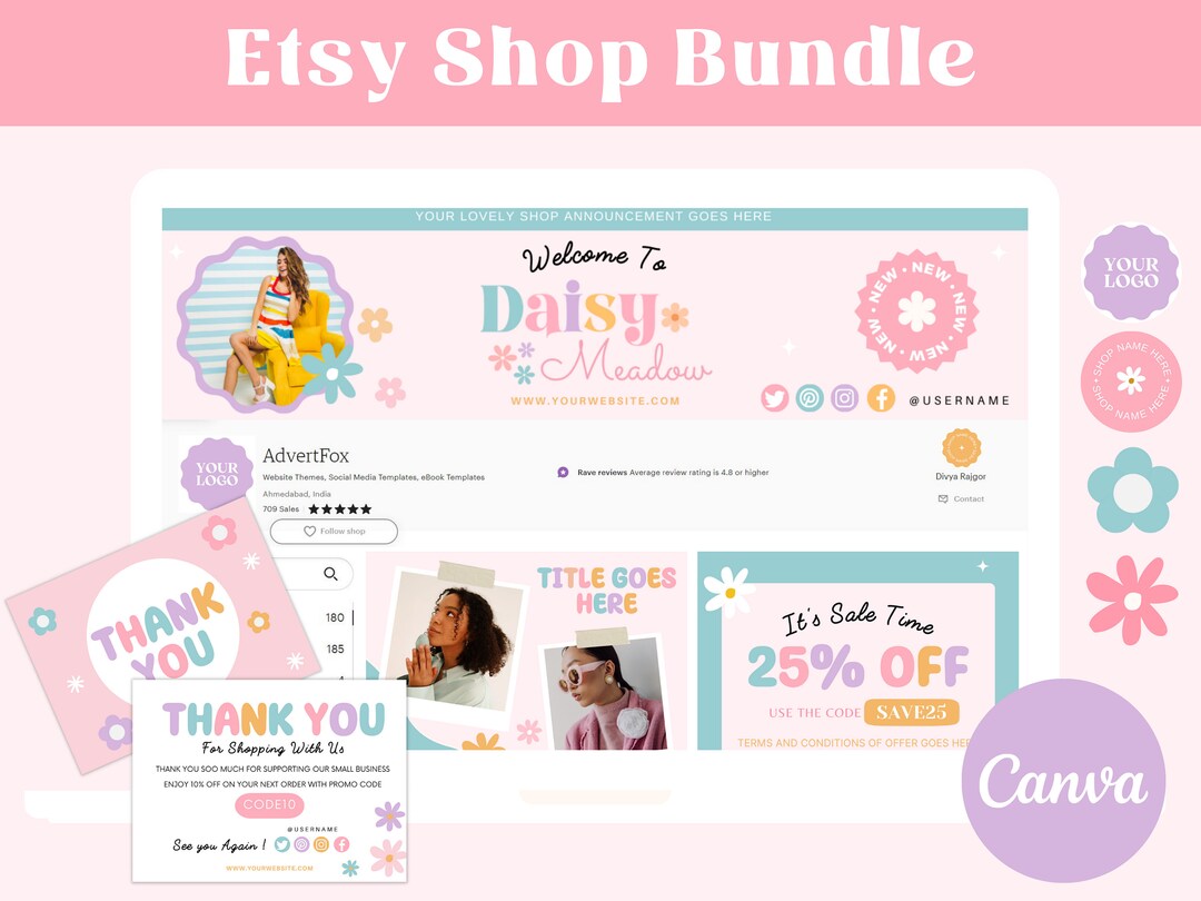 Etsy Shop Branding Starter Pack Kit Etsy Branding Kit Editable Etsy