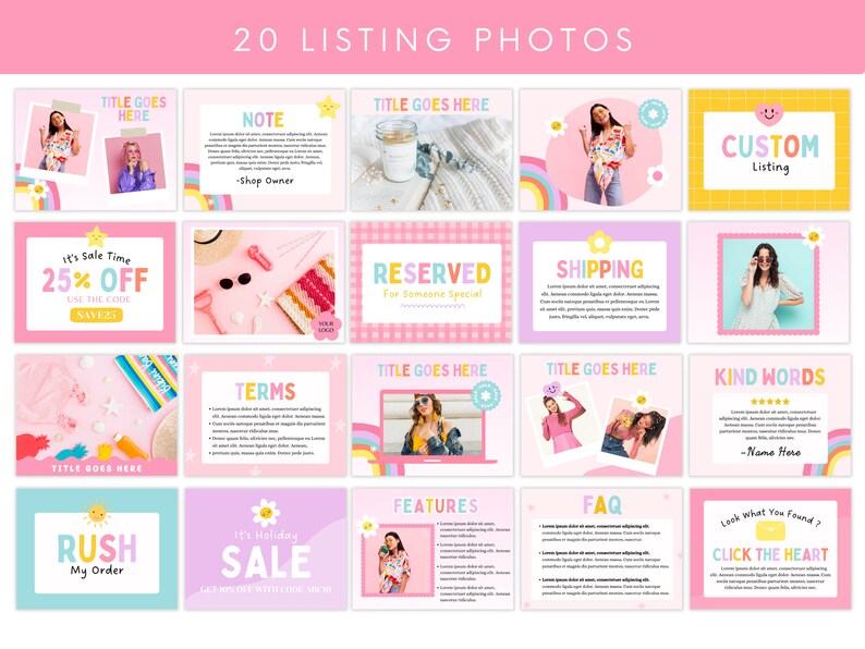 Pastel Rainbow Etsy Shop Kit Canva Template Etsy Banner Listing