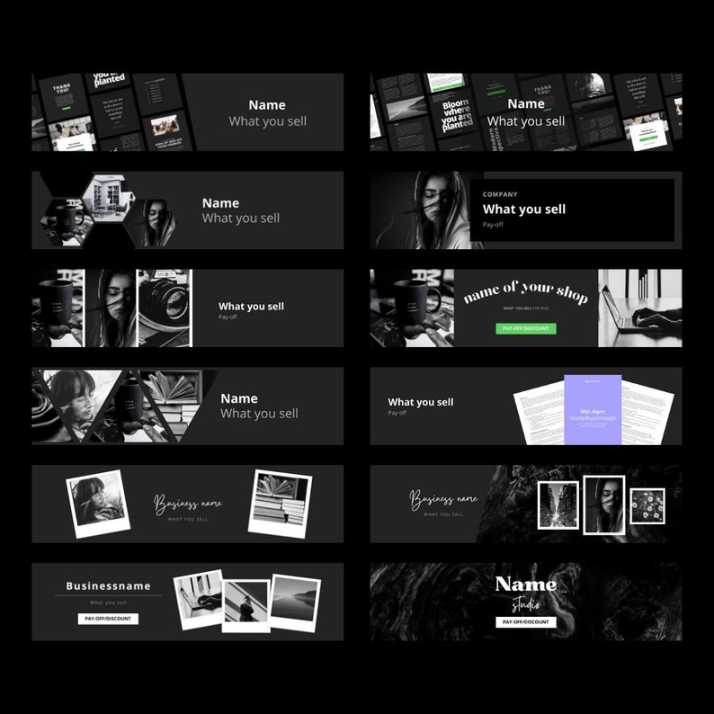 Black White Etsy Shop Banner Template / Cover Template 30 Fully