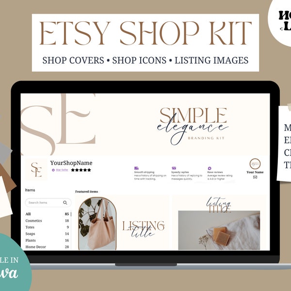 Etsy Shop Banner Template Bundle Neutral Etsy Shop Kit Boho Etsy