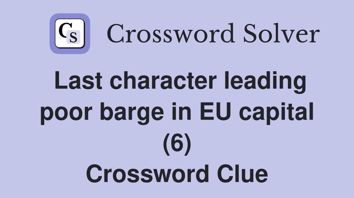 Last character leading poor barge in EU capital (6) Crossword Clue
