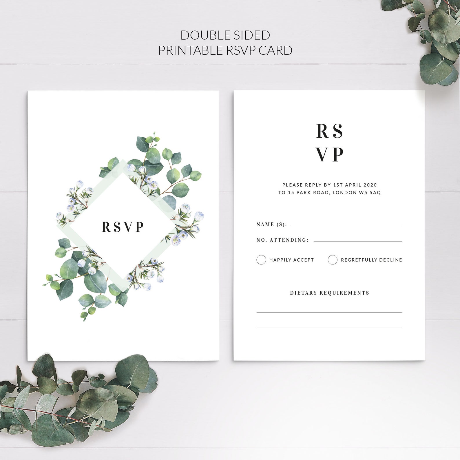 Eucalyptus Wedding Invitation Template Suite Botanical Etsy