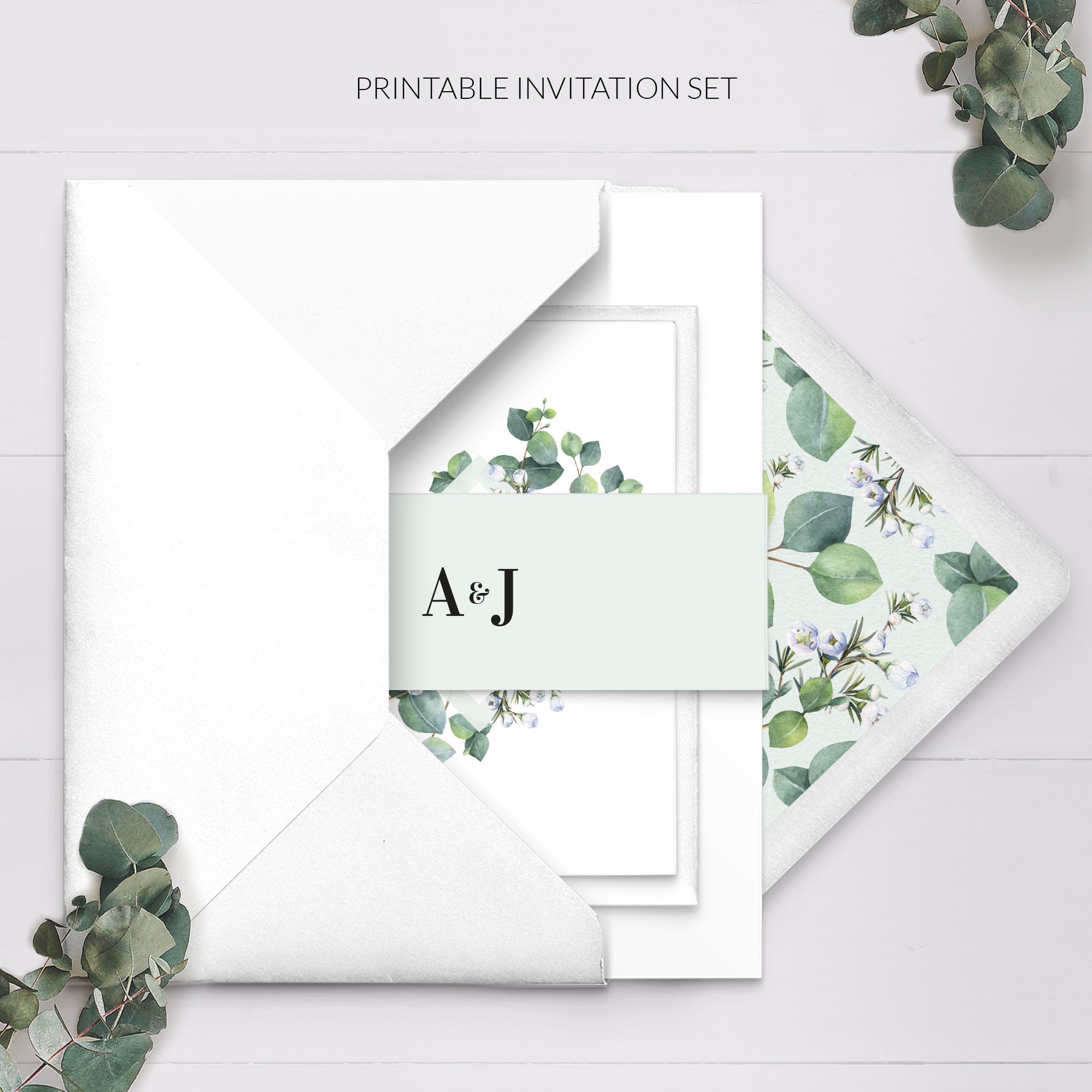Eucalyptus Wedding Invitation Template Suite Botanical Greenery