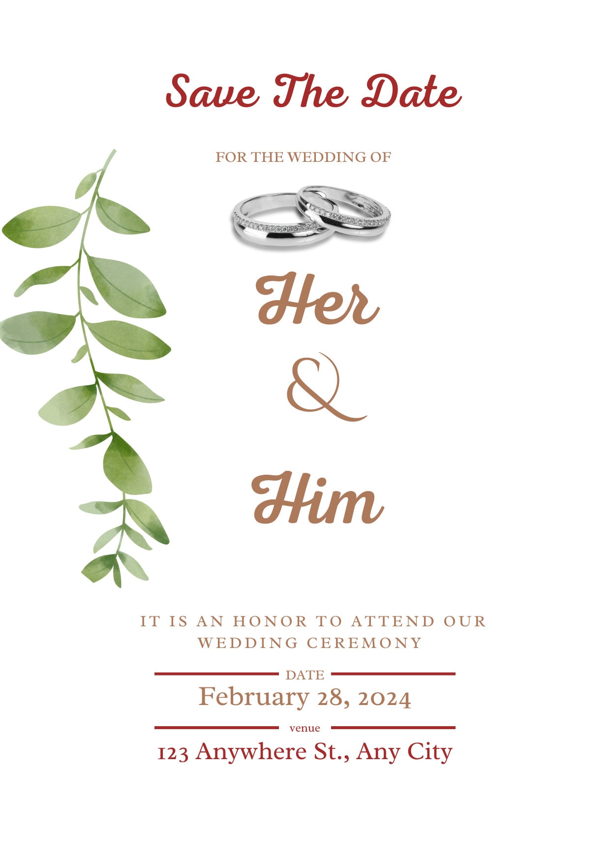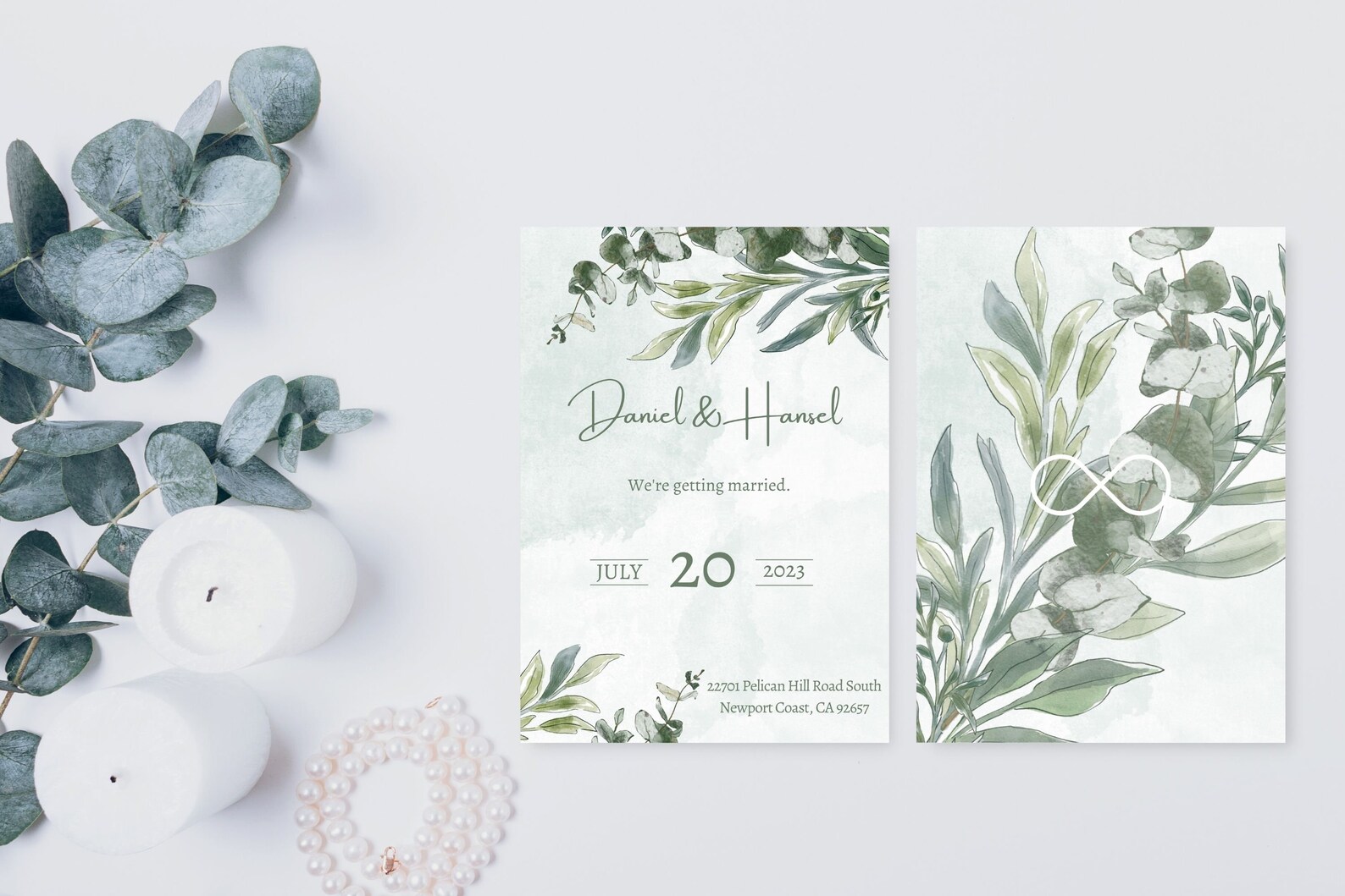 Free Eucalyptus Wedding Invitation Template to Edit Online