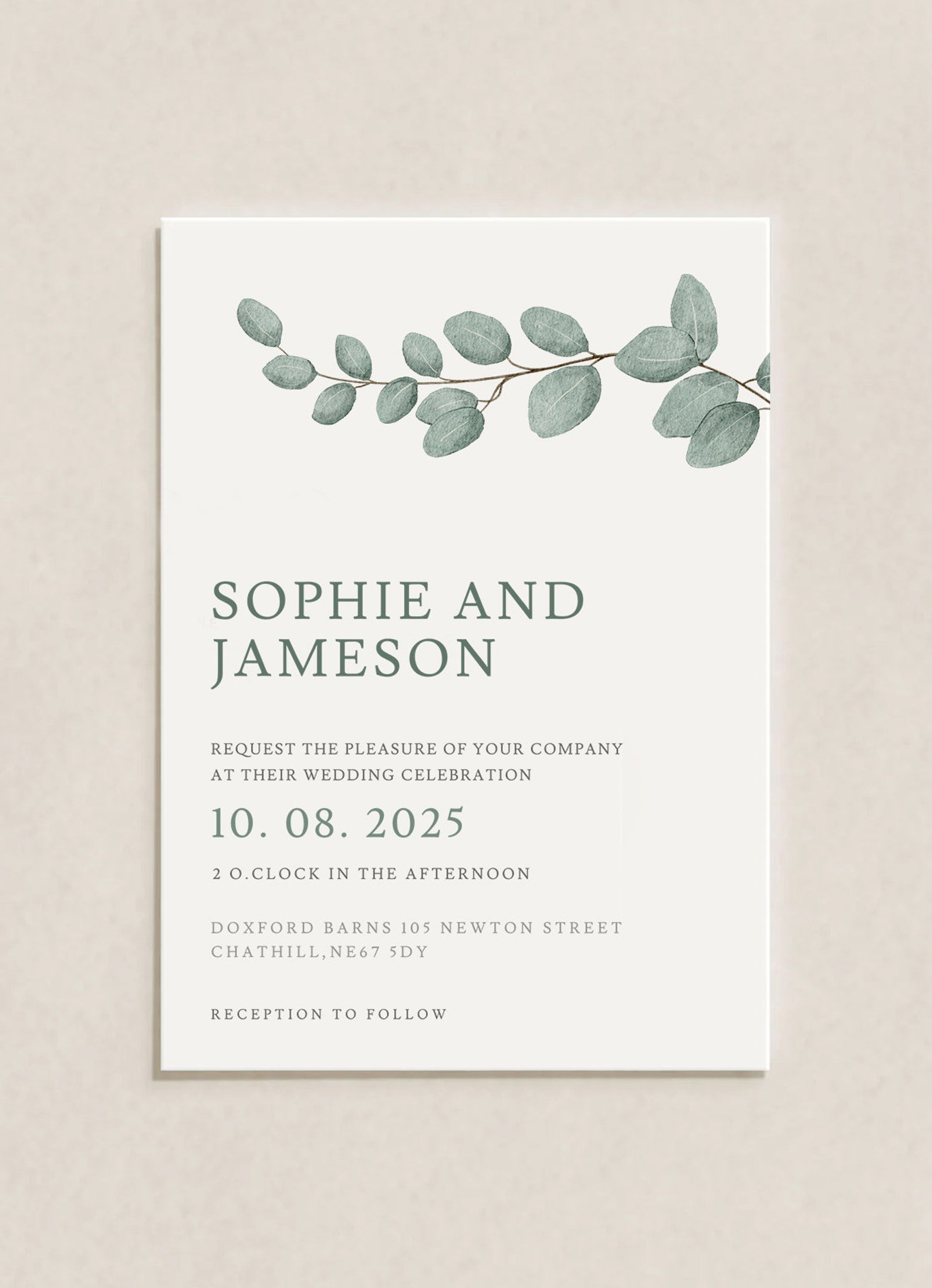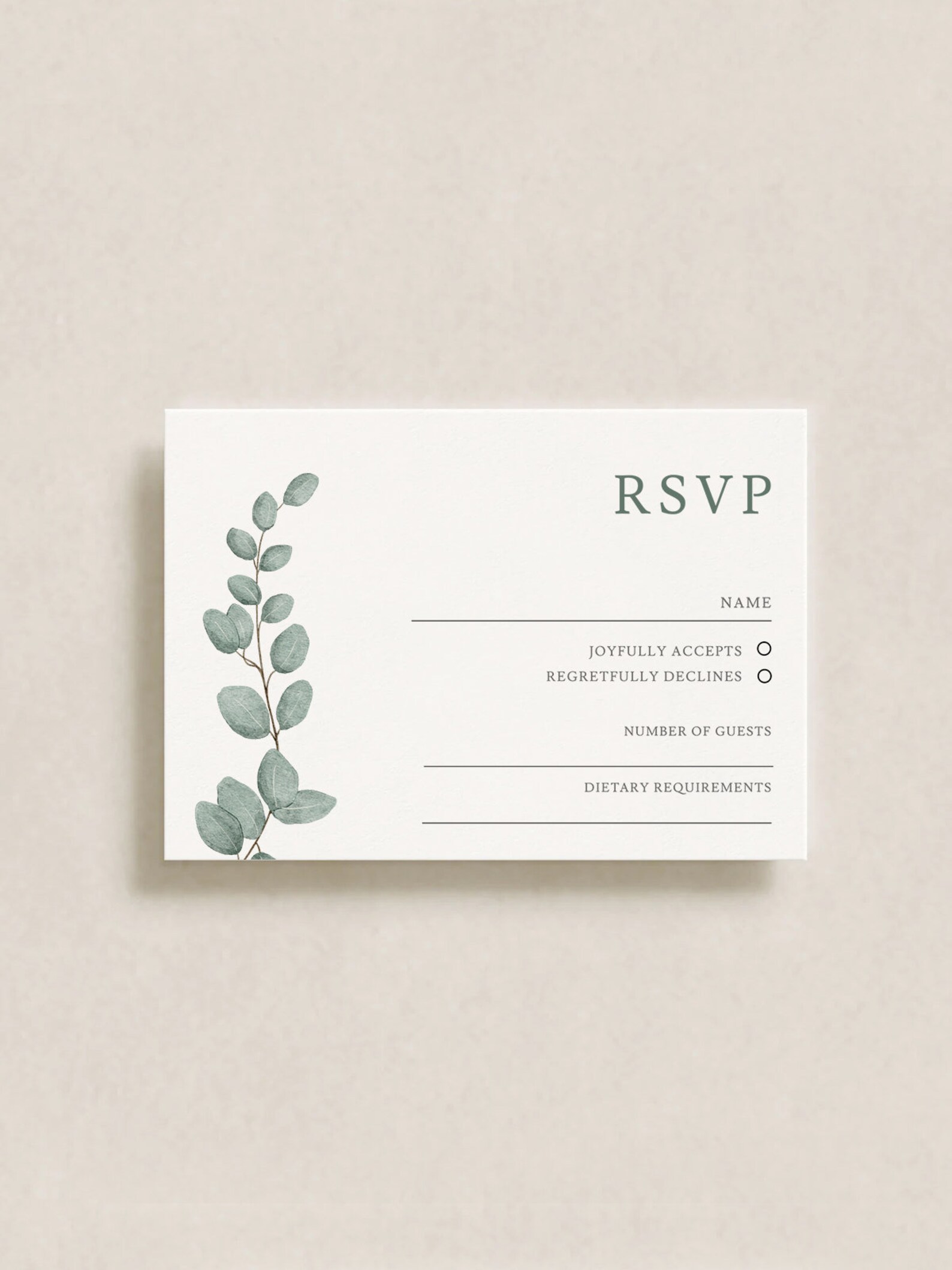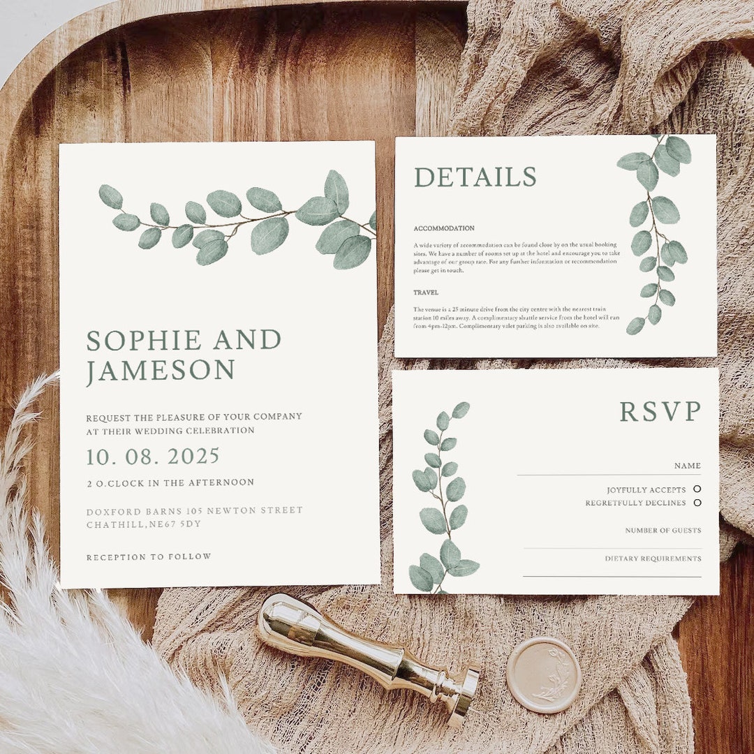 Eucalyptus Wedding Invitation Template 3x Piece Set Personalised