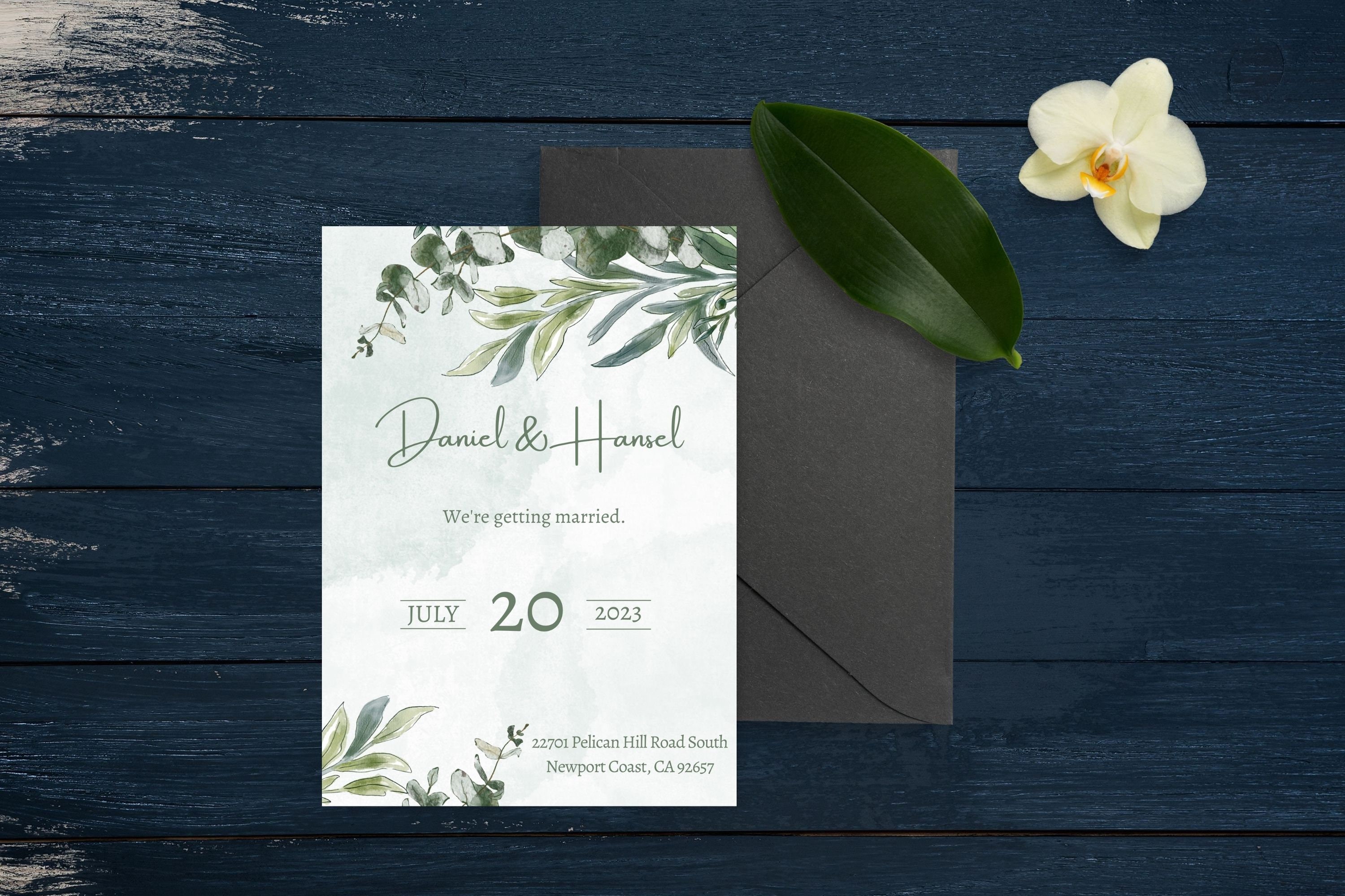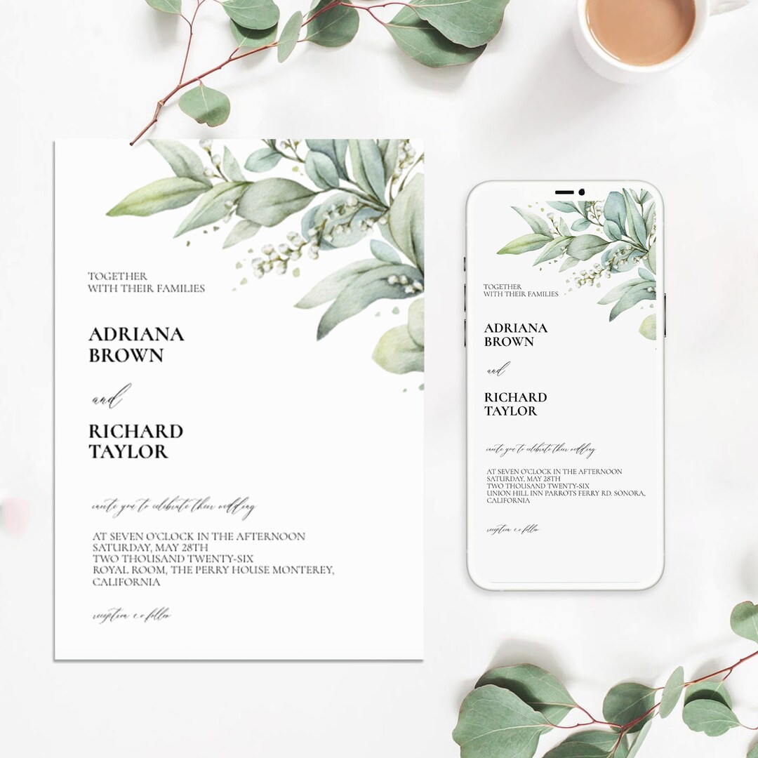 Eucalyptus Wedding Invitation Template Watercolor Wedding Invitation