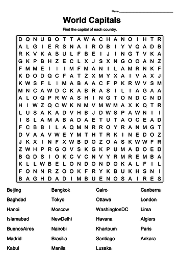 capital city Word Search WordMint