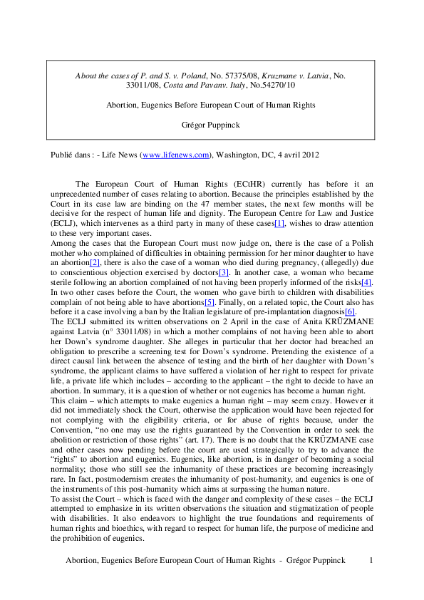 (PDF) Abortion Eugenics Before European Court of Human Rights