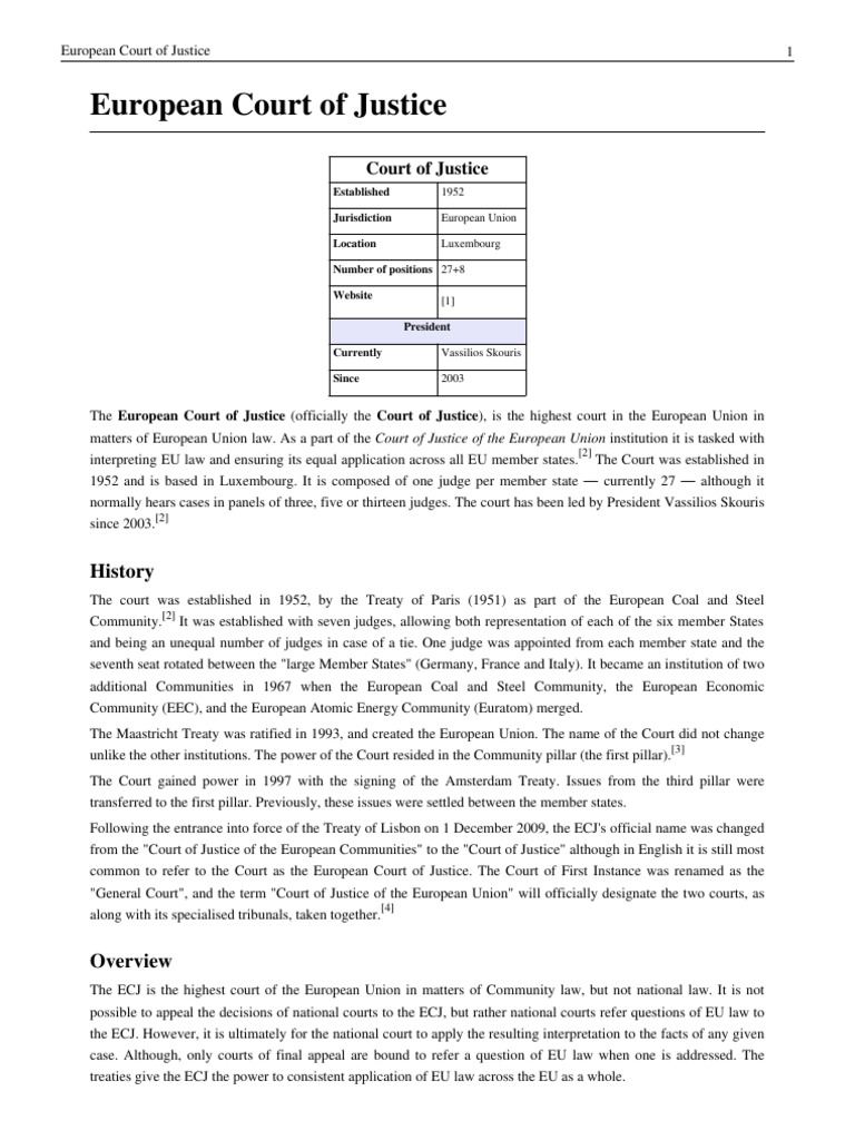 European Court of Justice PDF European Court Of Justice European