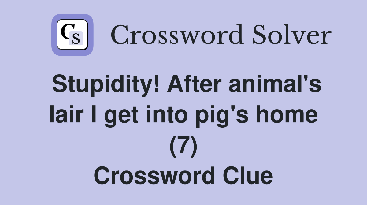 Stupidity After animal #39 s lair I get into pig #39 s home (7) Crossword