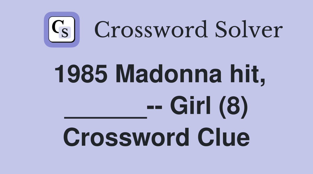 1985 Madonna hit Girl (8) Crossword Clue Answers