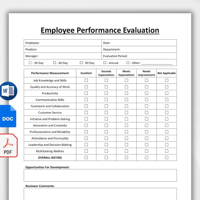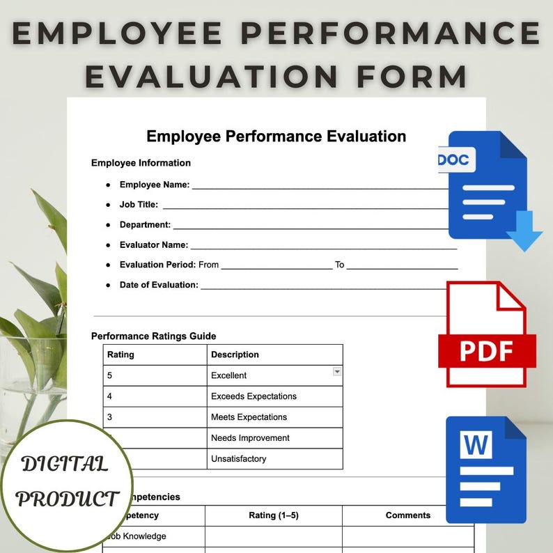 Employee Performance Evaluation Template Editable HR Forms (PDF Word