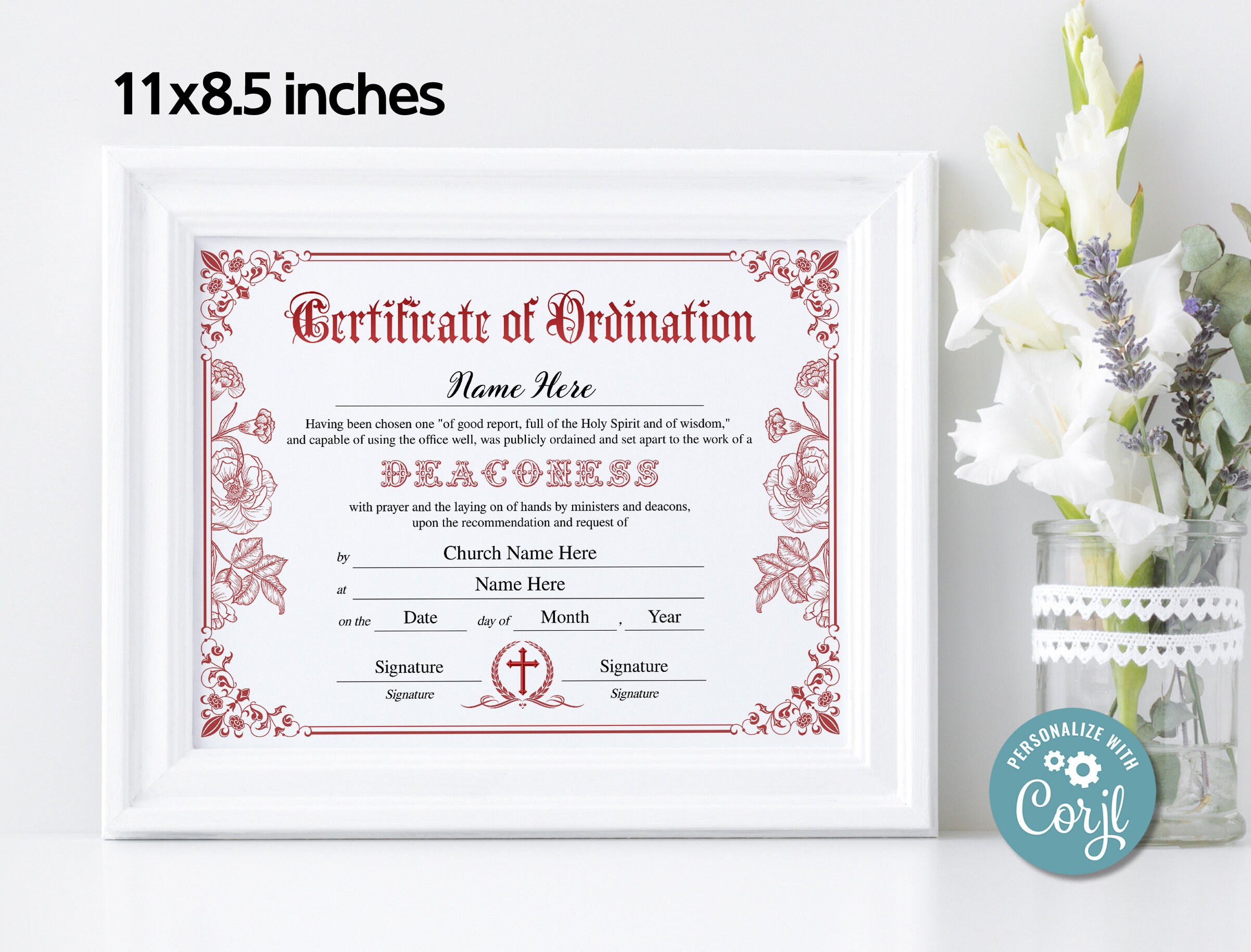 Editable Certificate of Ordination Template Ordained Minister Deacon