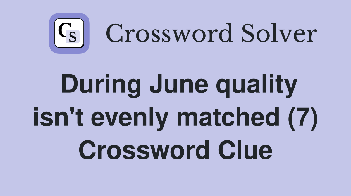 During June quality isn t evenly matched (7) Crossword Clue Answers