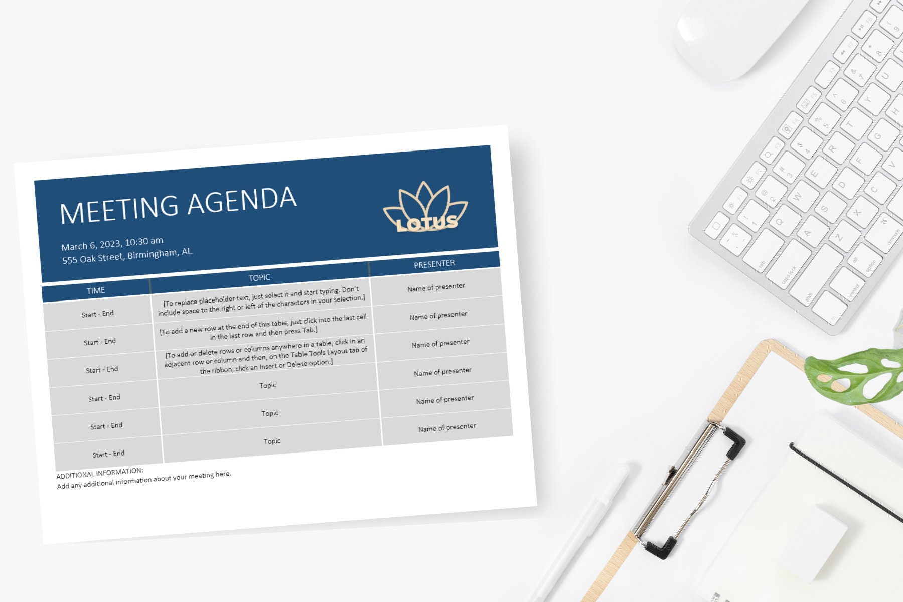 Meeting Agenda Template Microsoft Word Document Instant Download
