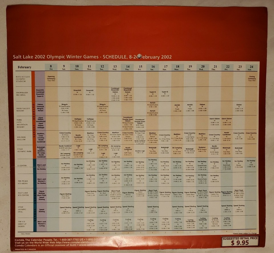 2002 OLYMPIC WINTER GAMES SOUVENIR CALENDAR: SALT LAKE CITY SCHEDULE