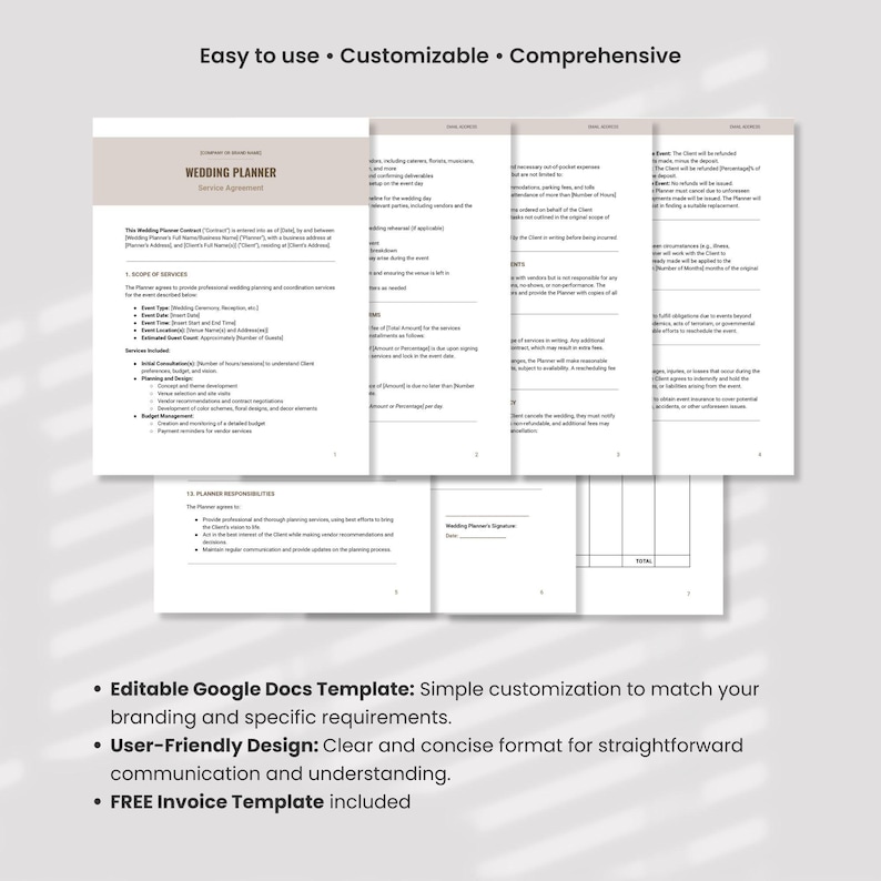 Event Planner Contract Editable Template Event Planning Agreement PDF