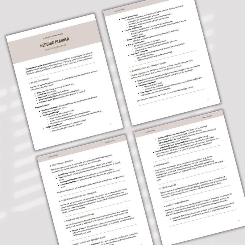 Wedding Coordinator Contract Template Google Doc for Wedding Planner