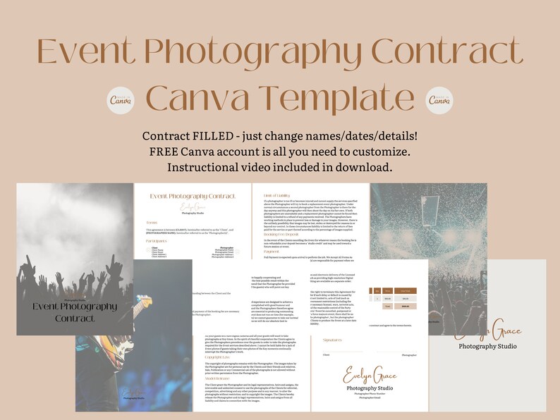 Event Photography Contract Template for Canva Clean Neutrals Free Canva