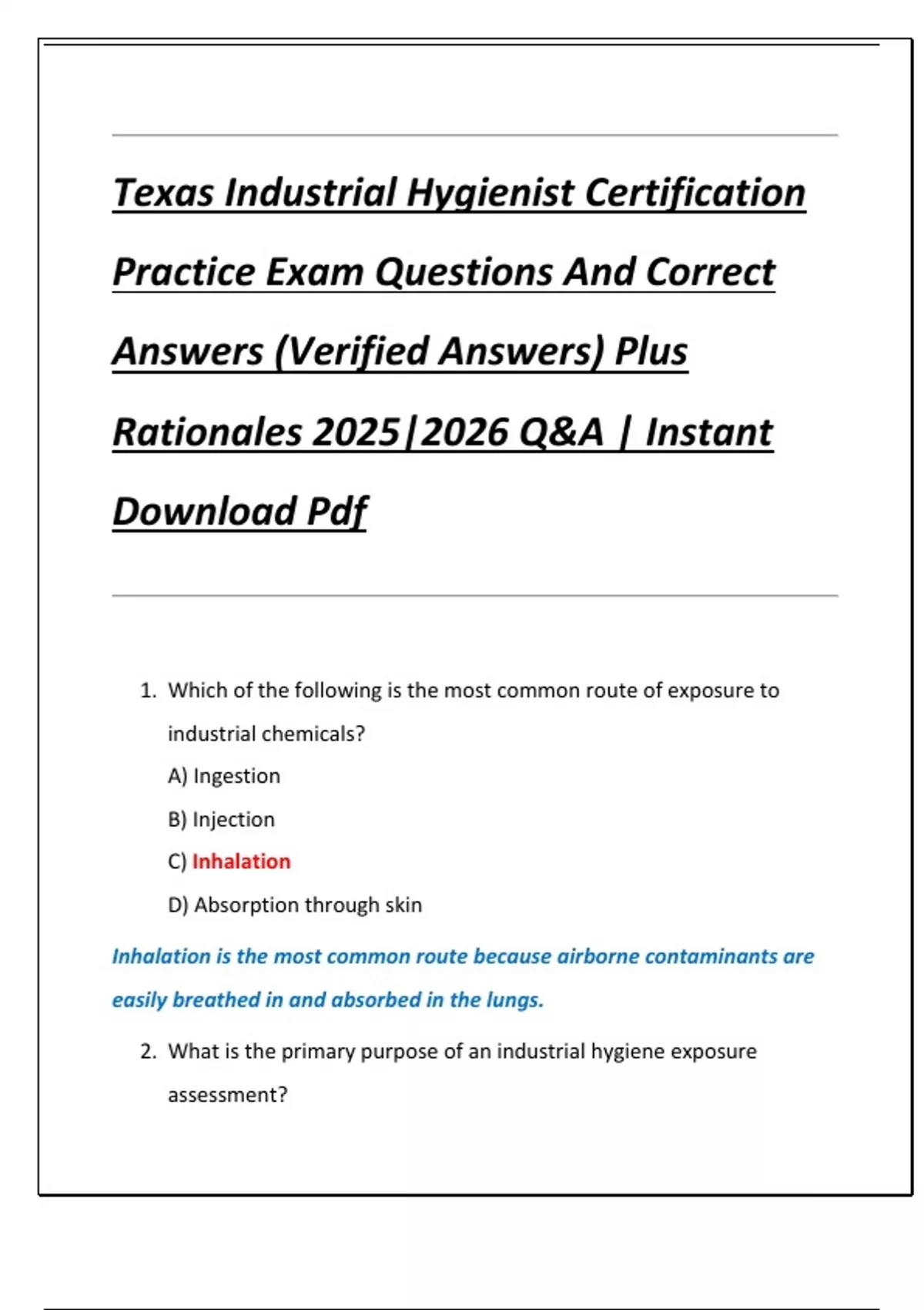 Texas Industrial Hygienist Certification Practice Exam Questions And