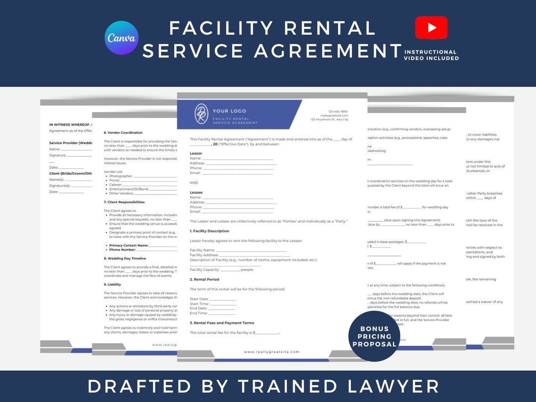 Venue Rental Agreement Template: Event Space Booking Contract Etsy