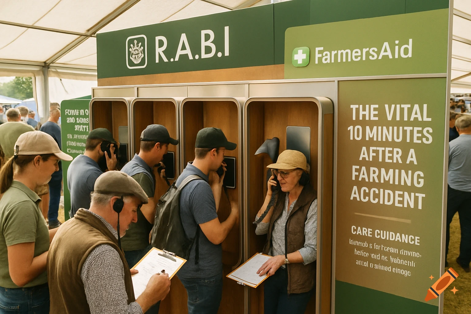 People engaging with an interactive stand at a farming event with